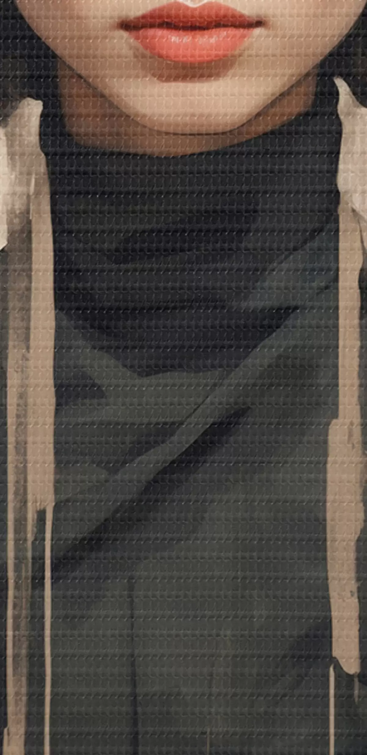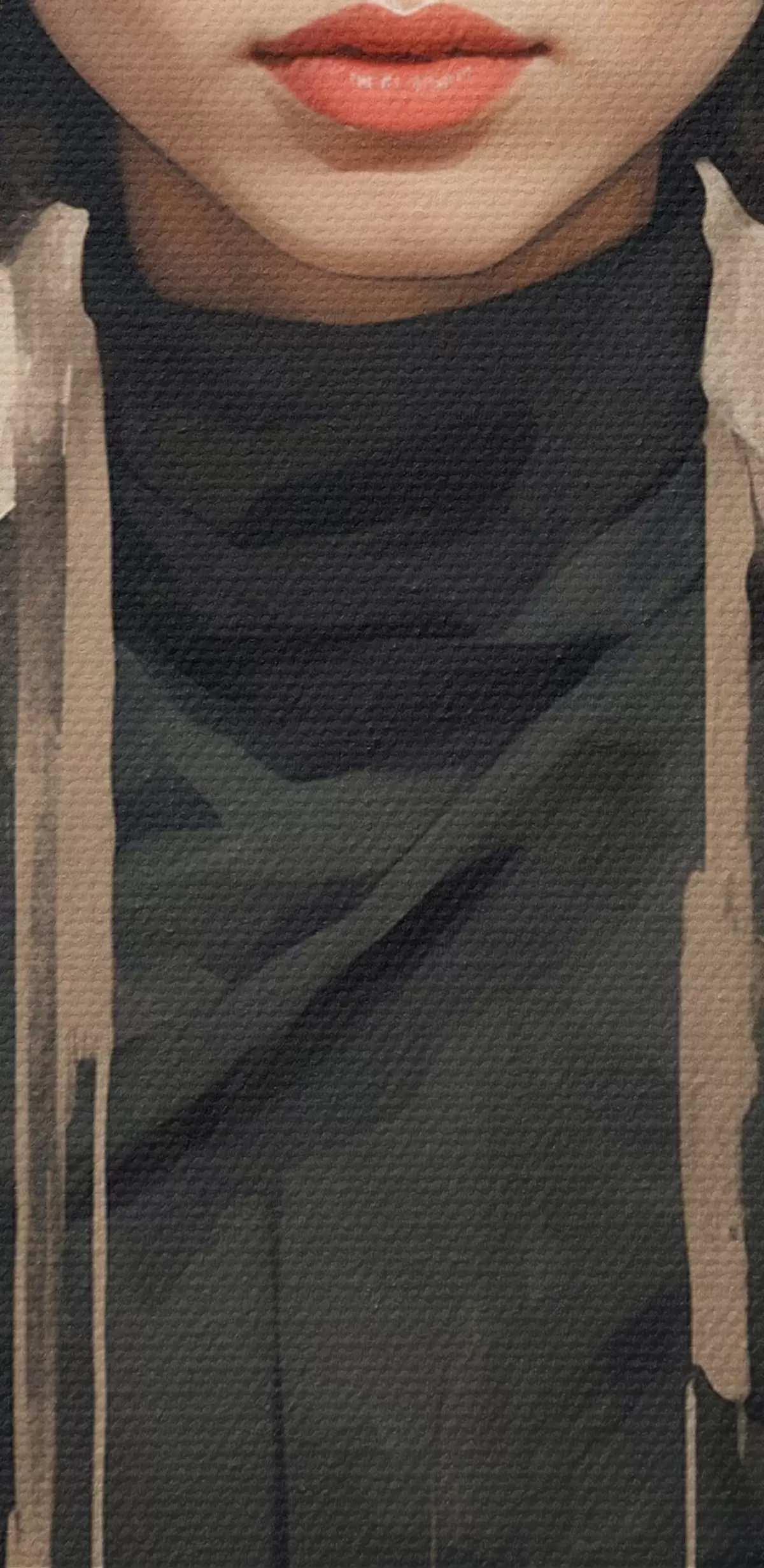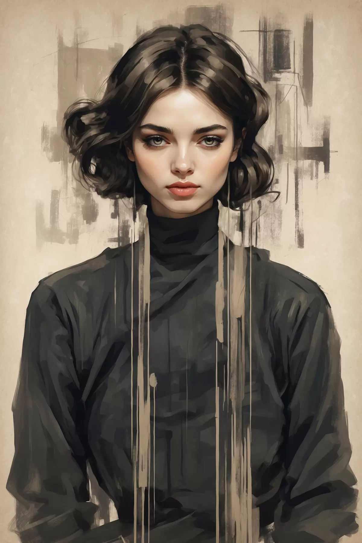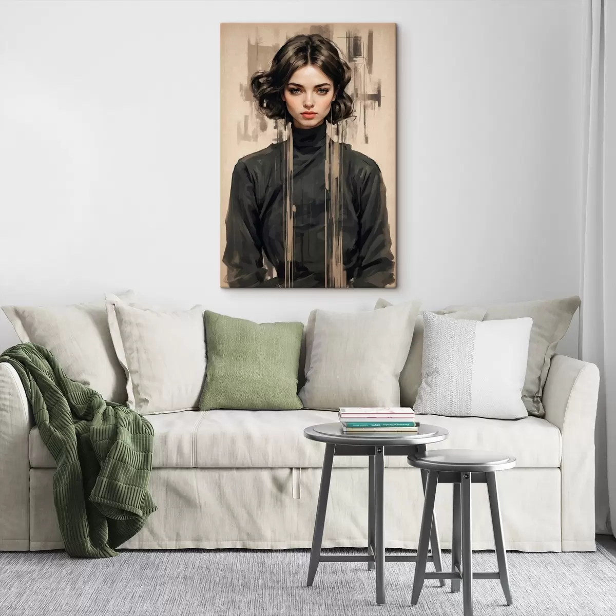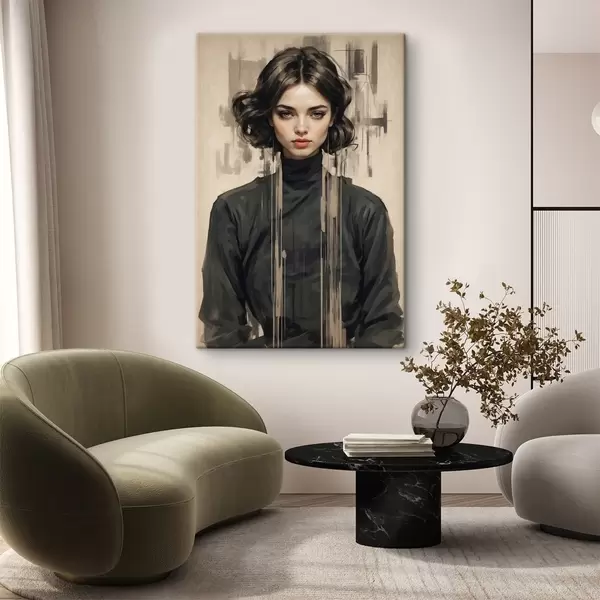 Obraz Portrét ženy s krátkými tmavými vlasy na abstraktním pozadí Č. s44890