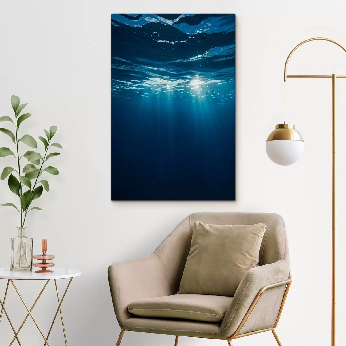Obraz Světelné paprsky pod vodou v hlubokém modrém oceánu Č. s44897