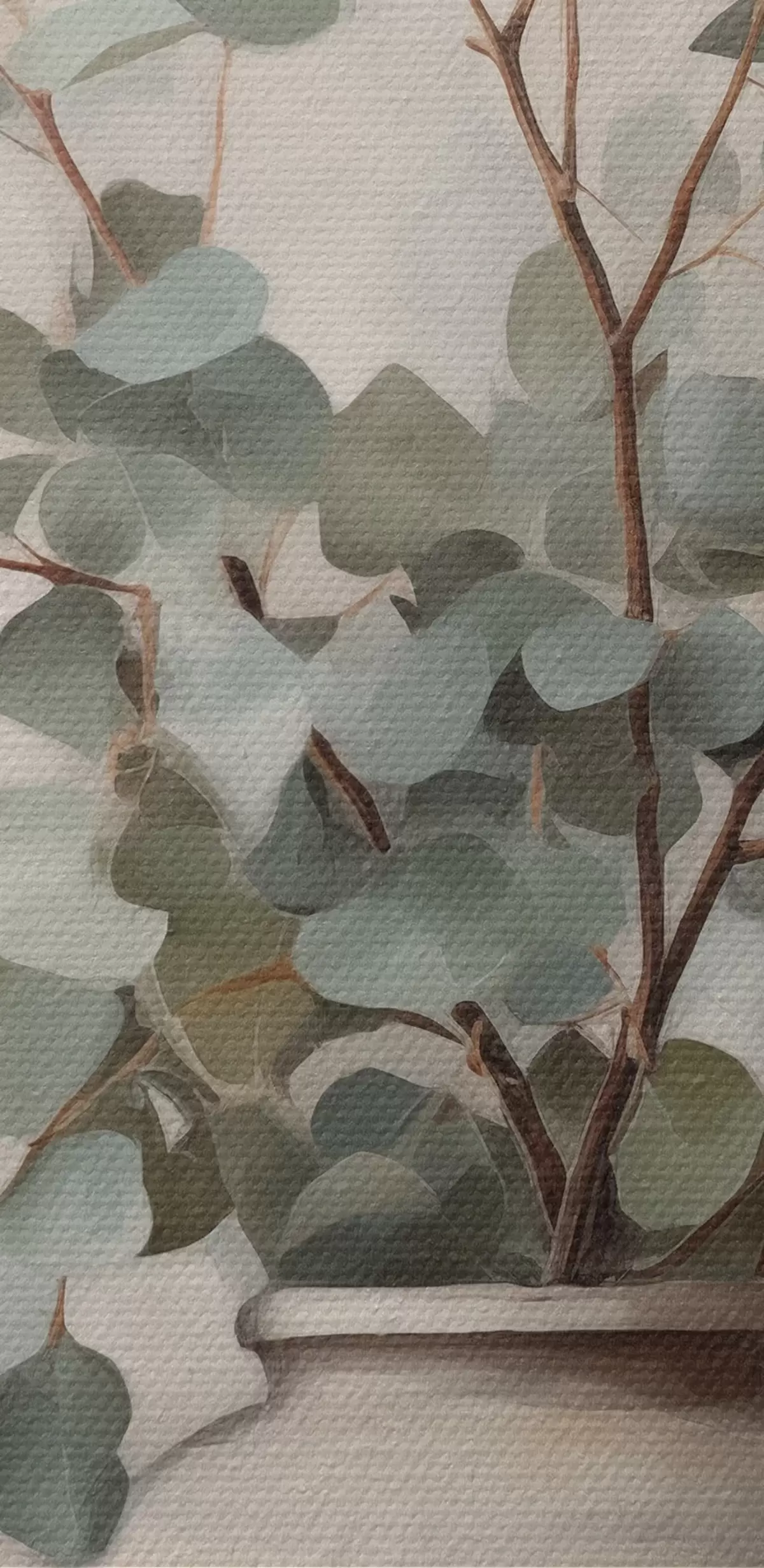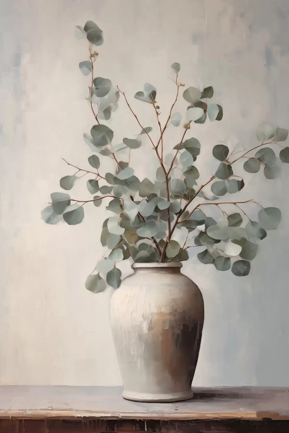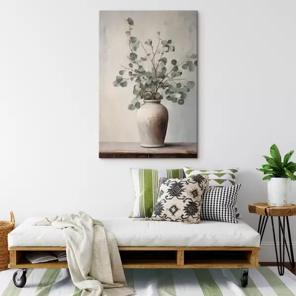 Obraz Eukalyptové větvičky v hliněné váze Č. s44906