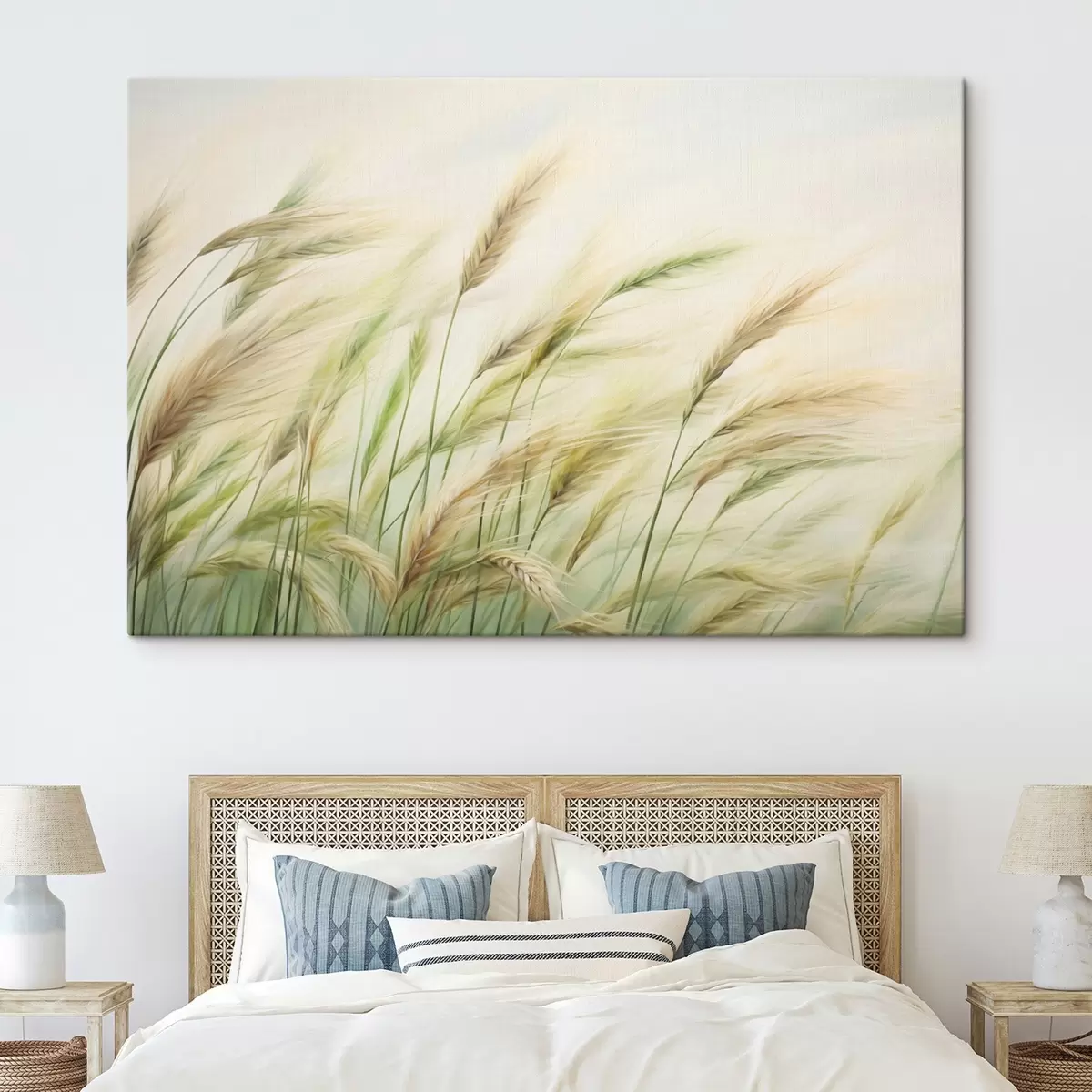 Obraz Pšeničné pole se žlutými a zelenými klasy, jemné tahy štětcem a světlá paleta barev, přírodní atmosféra Č. s44923