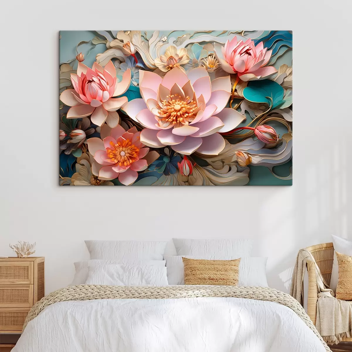 Obraz Růžovo-oranžové lotosy ve stylu 3D kresby Č. s44934