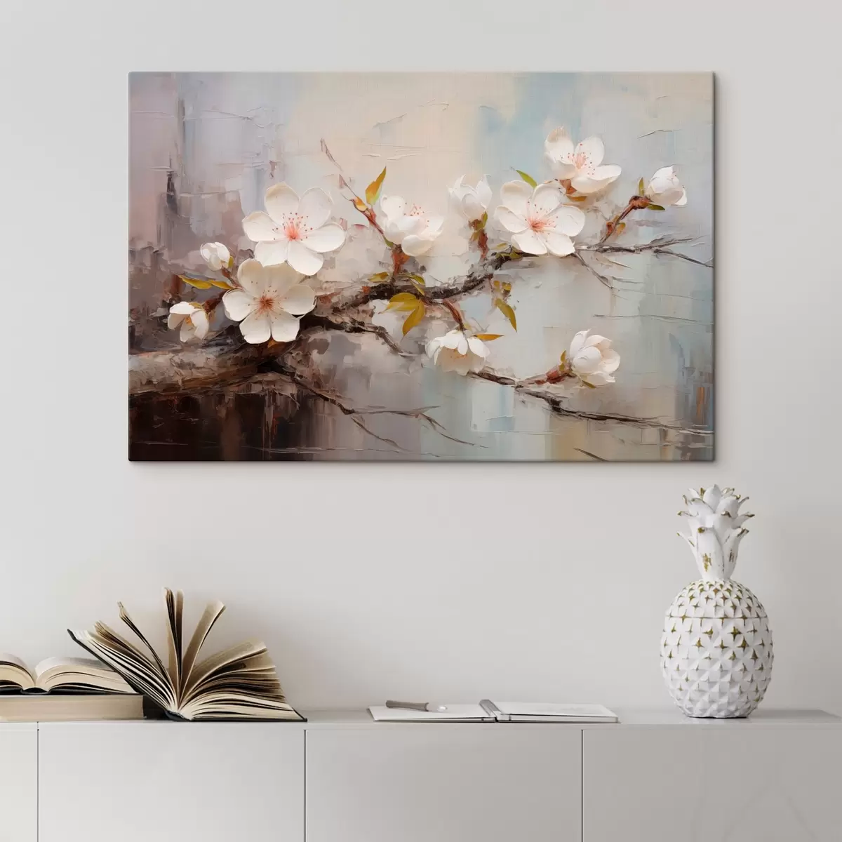 Obraz Bílé květiny s růžovými akcenty na abstraktním pozadí Č. s44935
