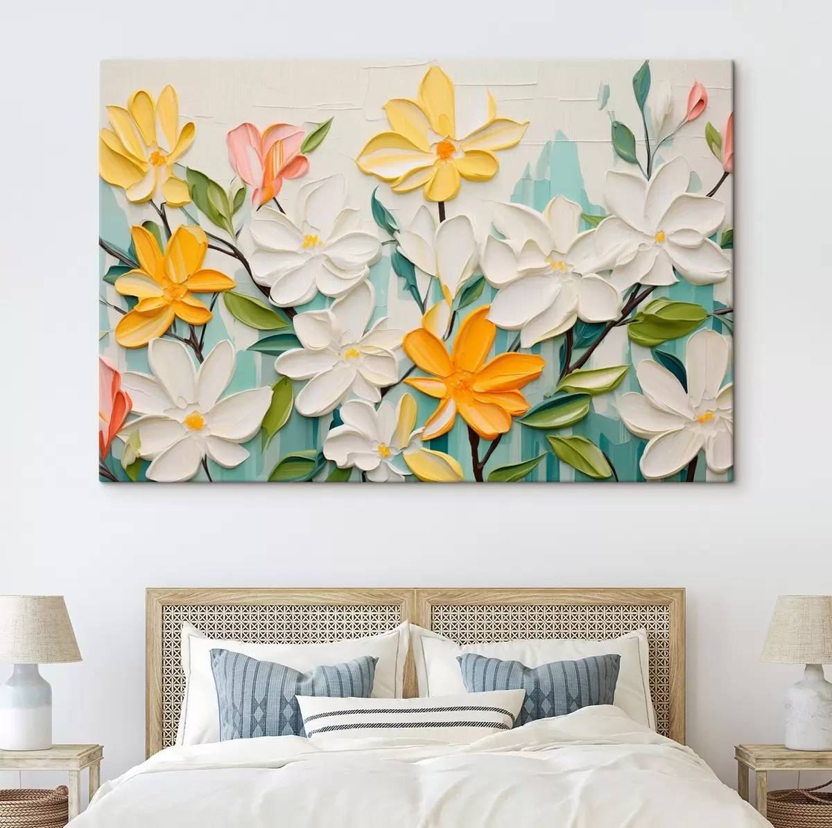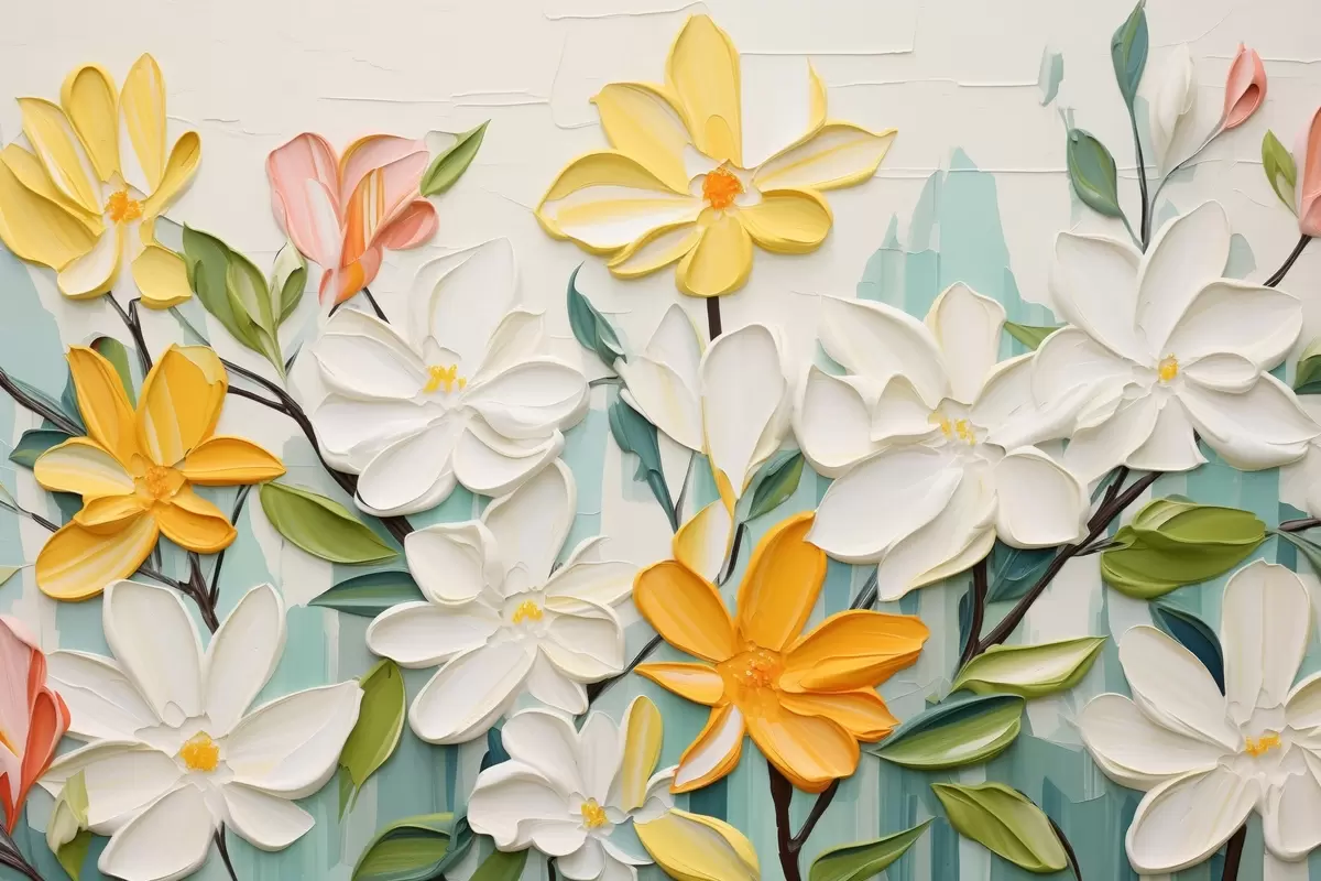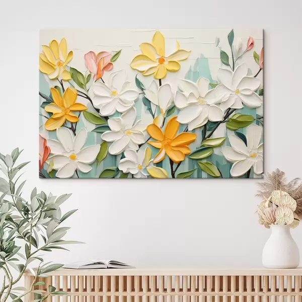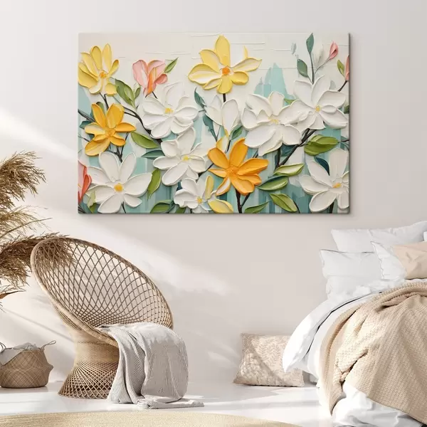 Obraz Reliéfní květiny v jasných barvách ve stylu imitace tahů štětcem Č. s44942