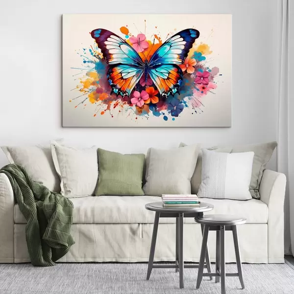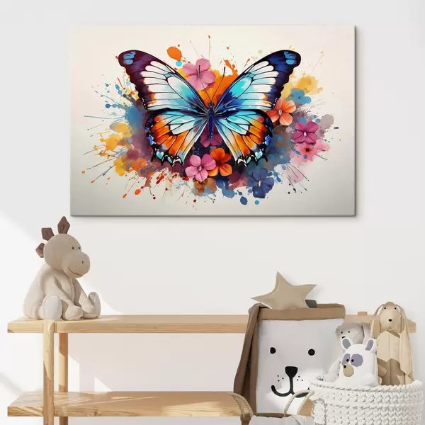 Obraz Dynamická kompozice motýla a květinových skvrn v uměleckém stylu Č. s44943