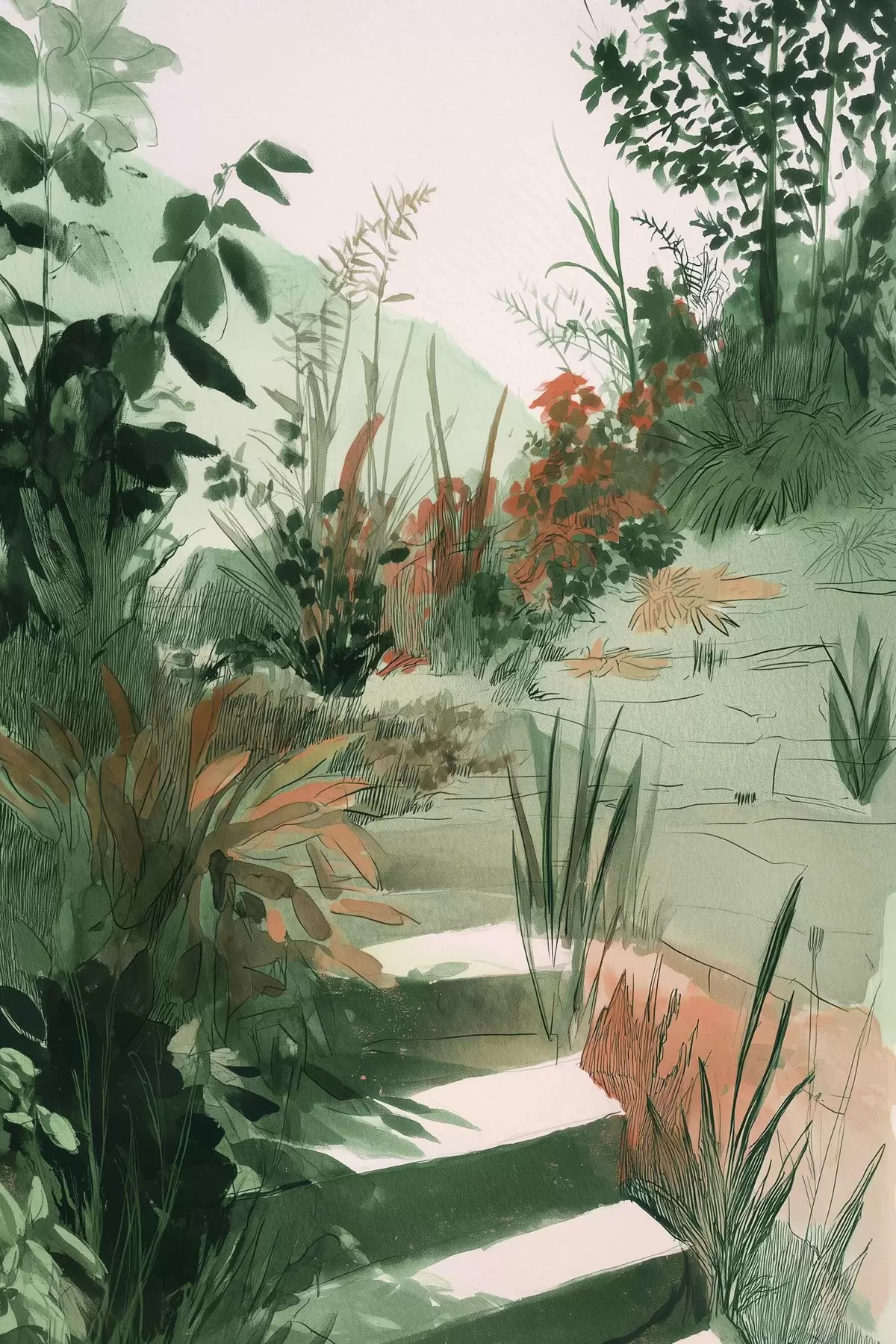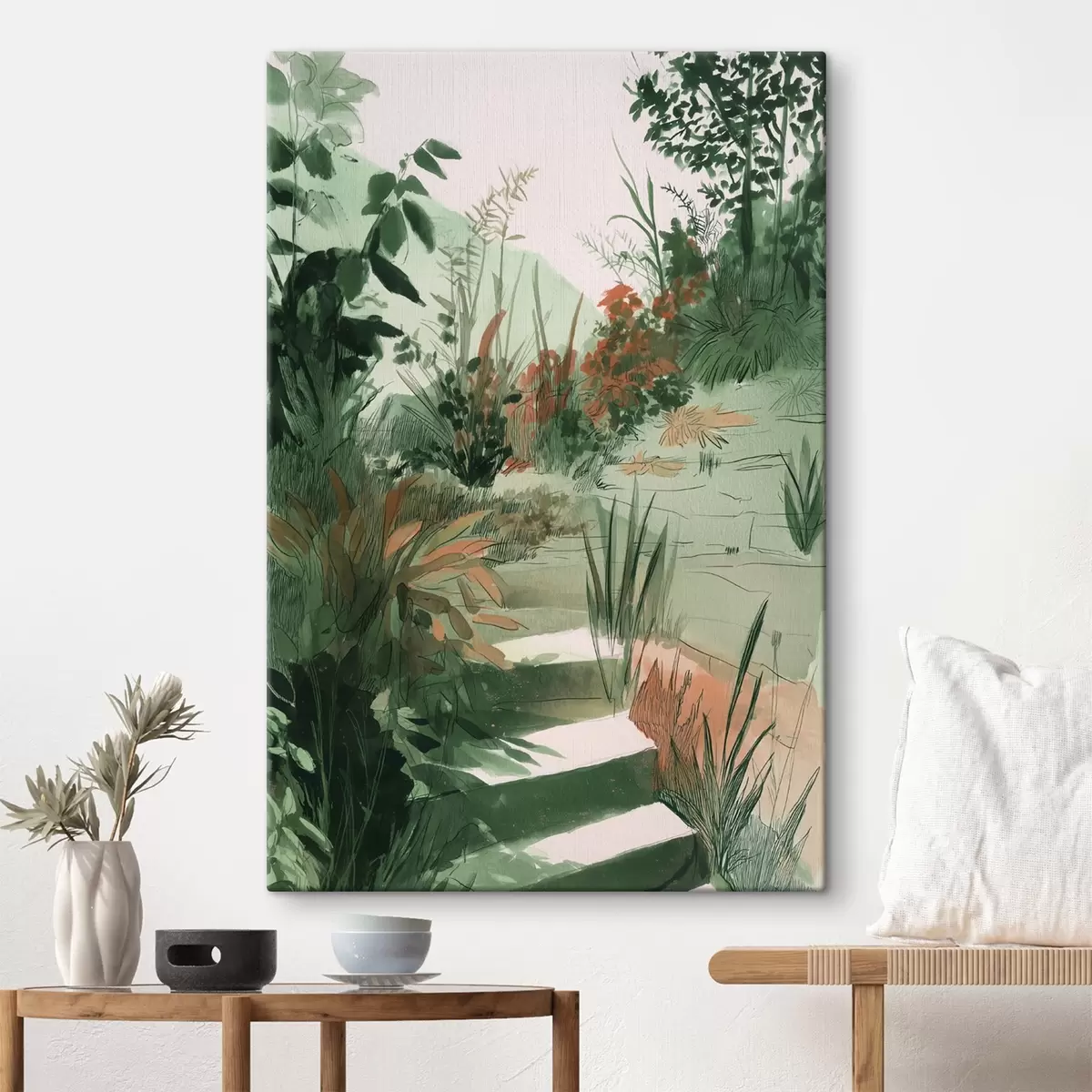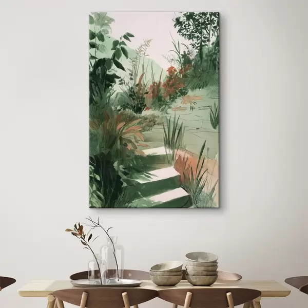 Obraz Orientální zahrada s keři a stromy, zelené barvy Č. s44982