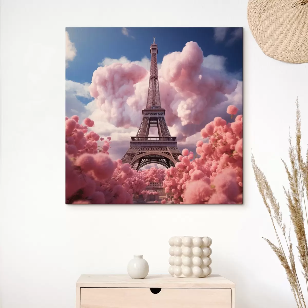 Obraz Eiffelova věž v růžových mracích ve stylu fantasy Č. s45036