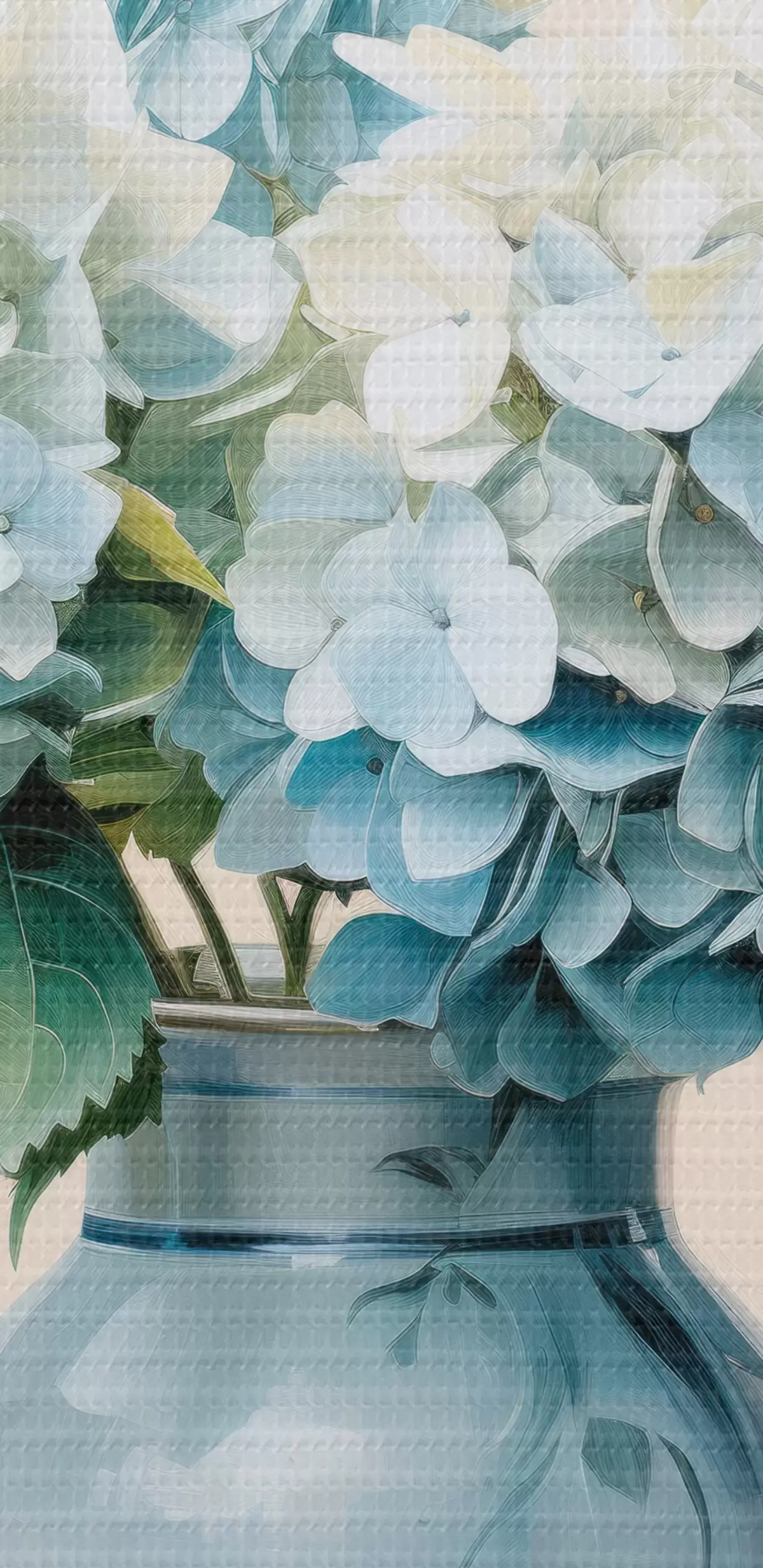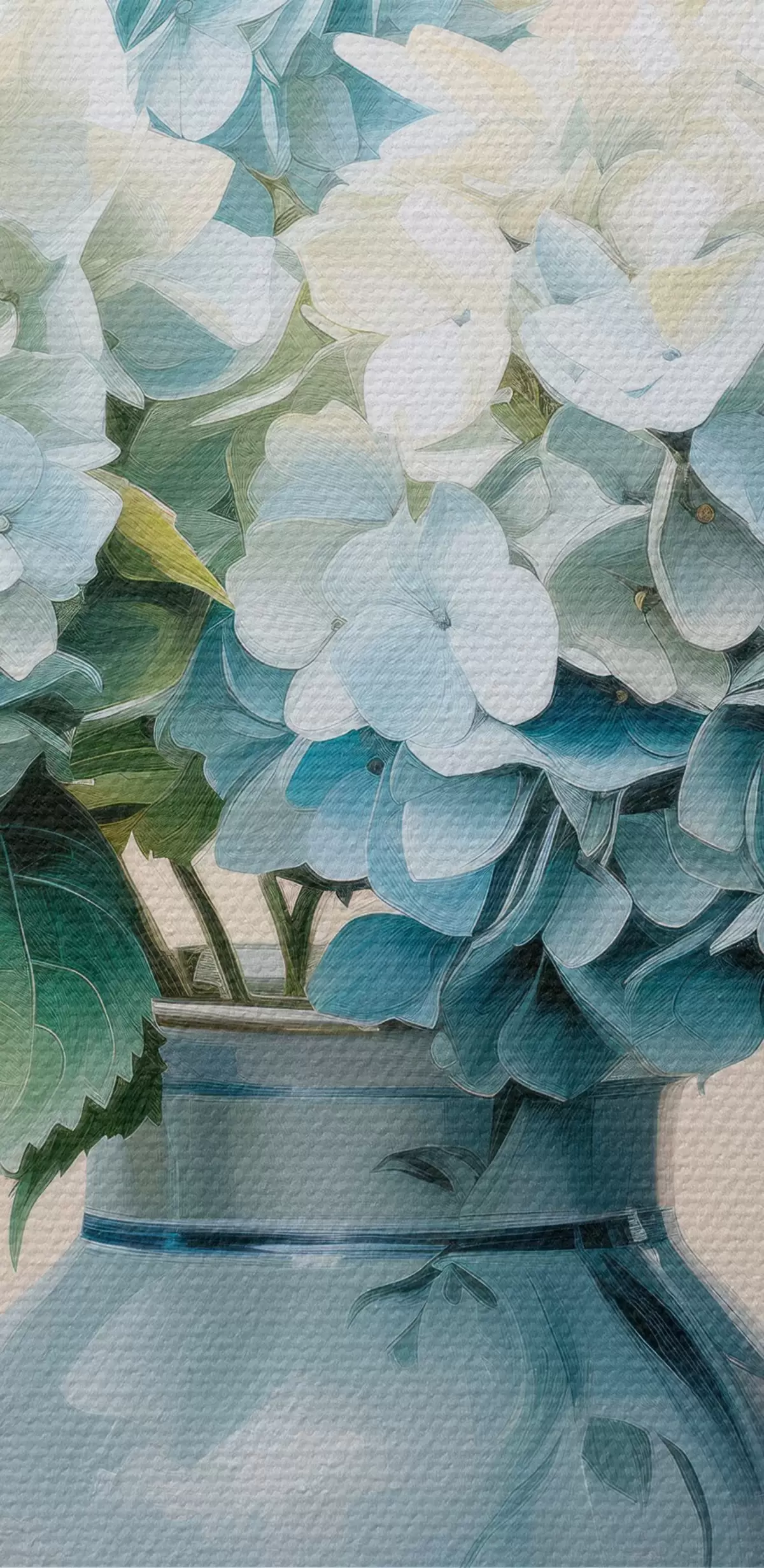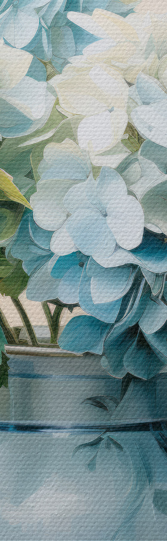 Obraz Čerstvé hortenzie v modré váze na světlém pozadí Č. s45043
