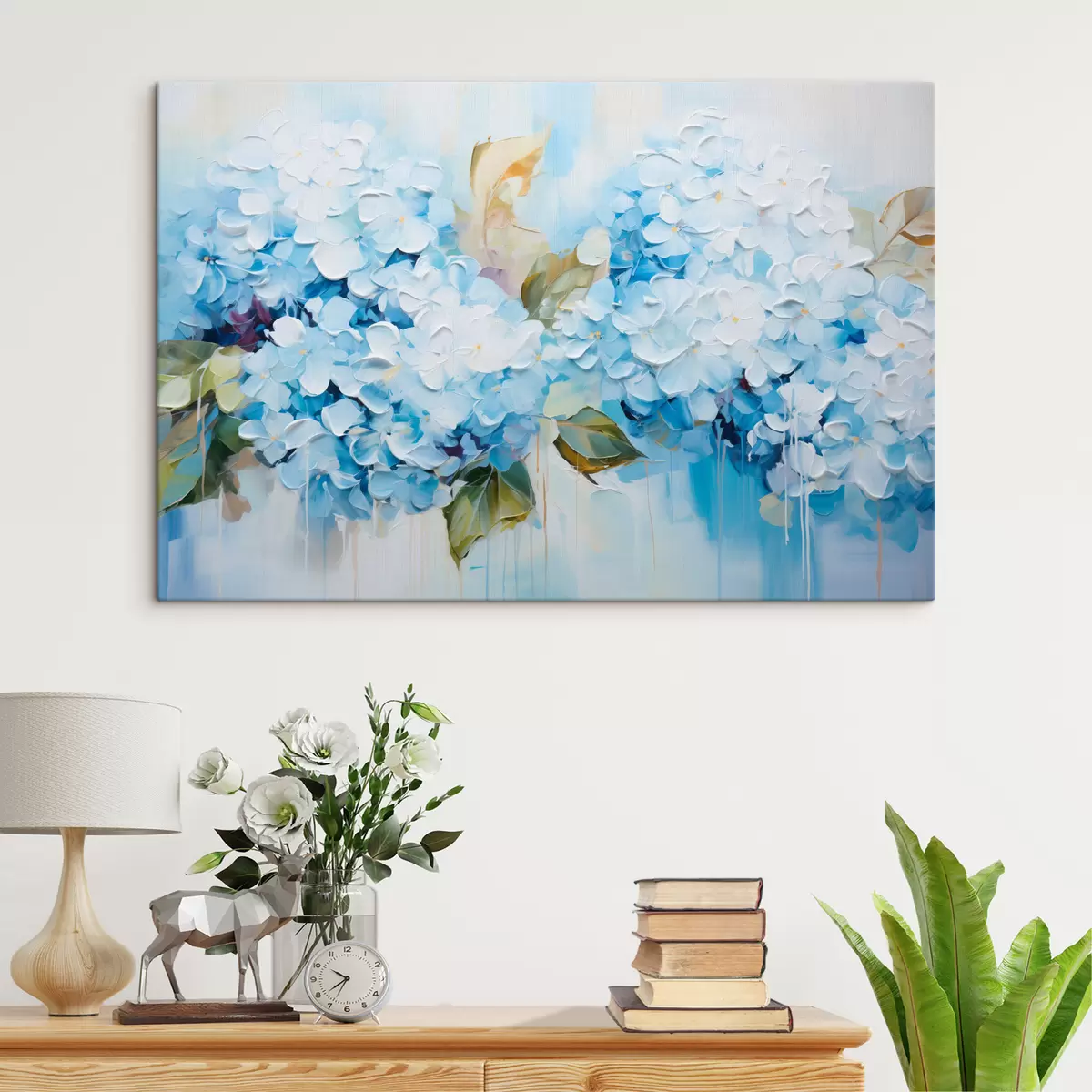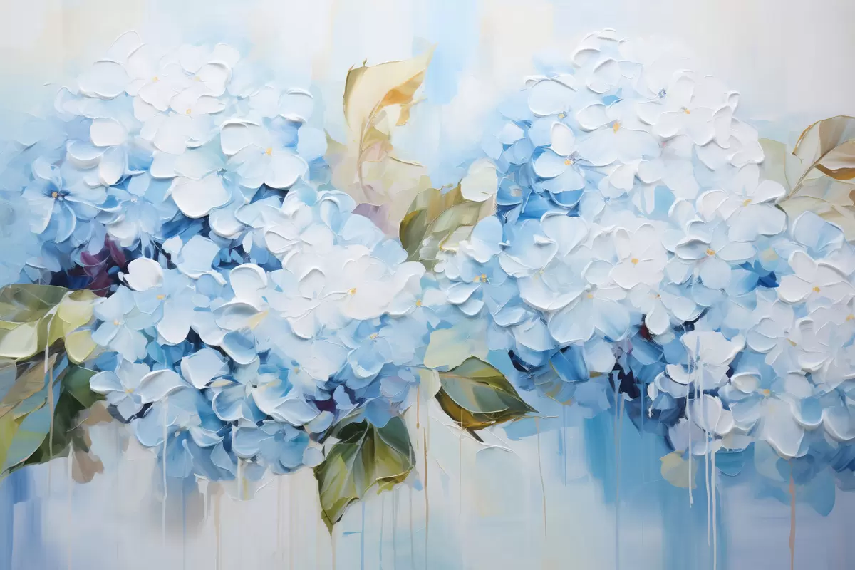 Obraz Pastelové hortenzie v technice volumetrické malby Č. s45052