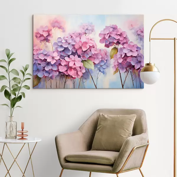 Obraz Pole křehkých hortenzií v pastelových tónech Č. s45057
