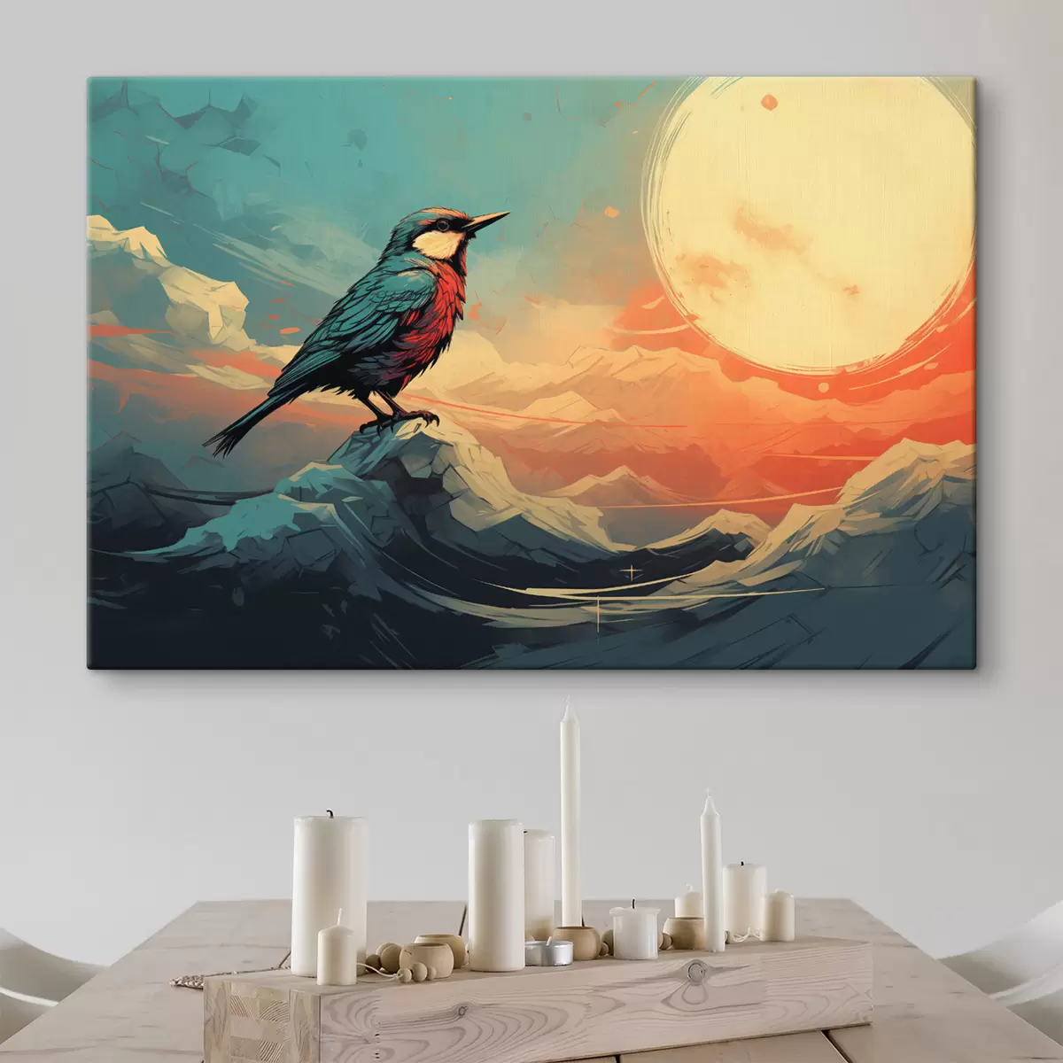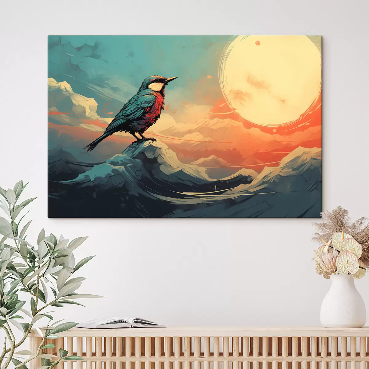 Obraz Umělecká krajina s ptákem a živou oblohou Č. s45060