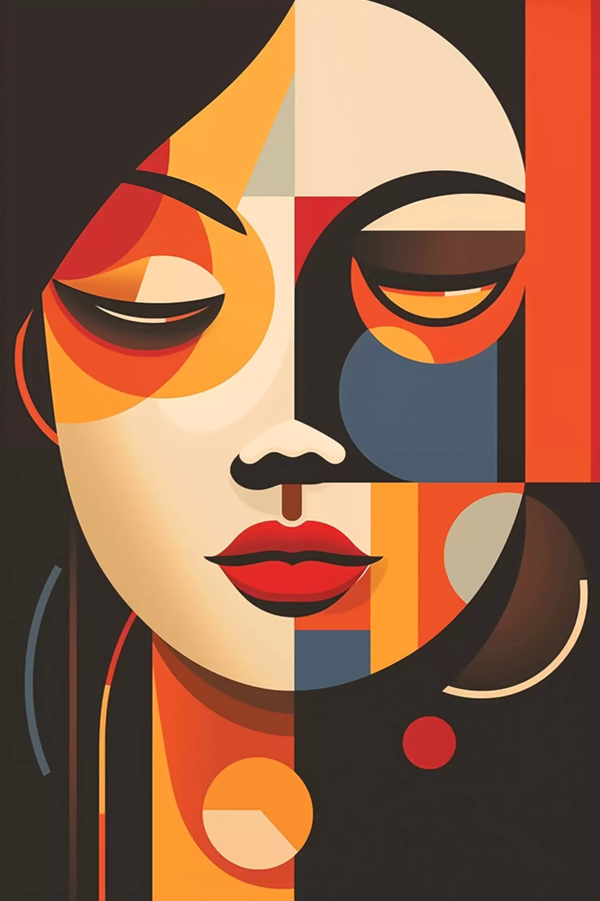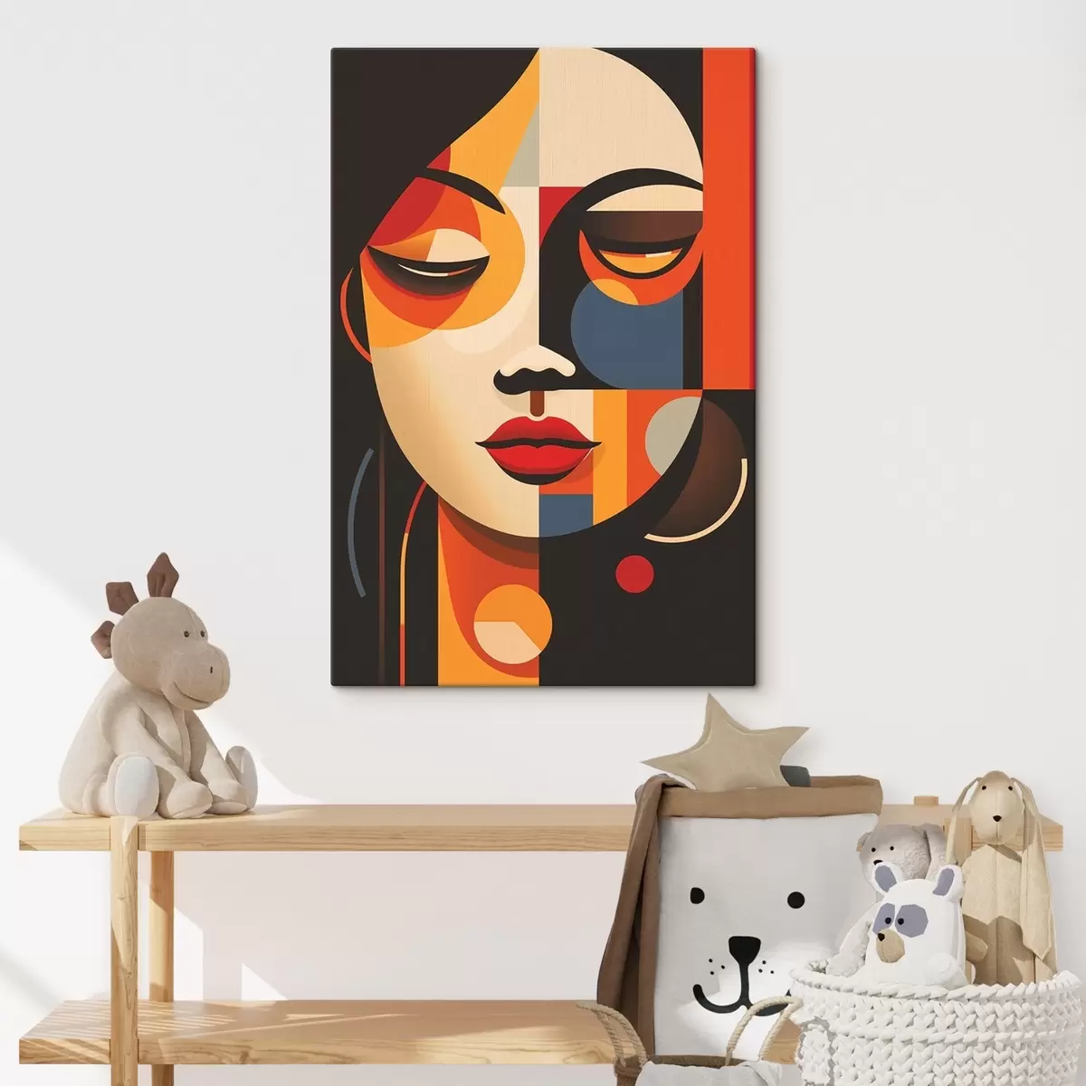 Obraz Geometrická ženská tvář v teplých barvách Č. s45087