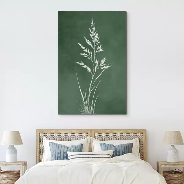Obraz polní tráva, příroda, botanické umění, elegantní, plochý styl, tlumené tóny, zeleň Č. s45093