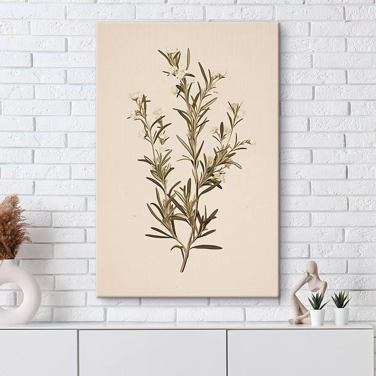 Obraz botanické, béžové pozadí, bylina, minimální, rostlina, zelené listy, stonek, větev Č. s45098