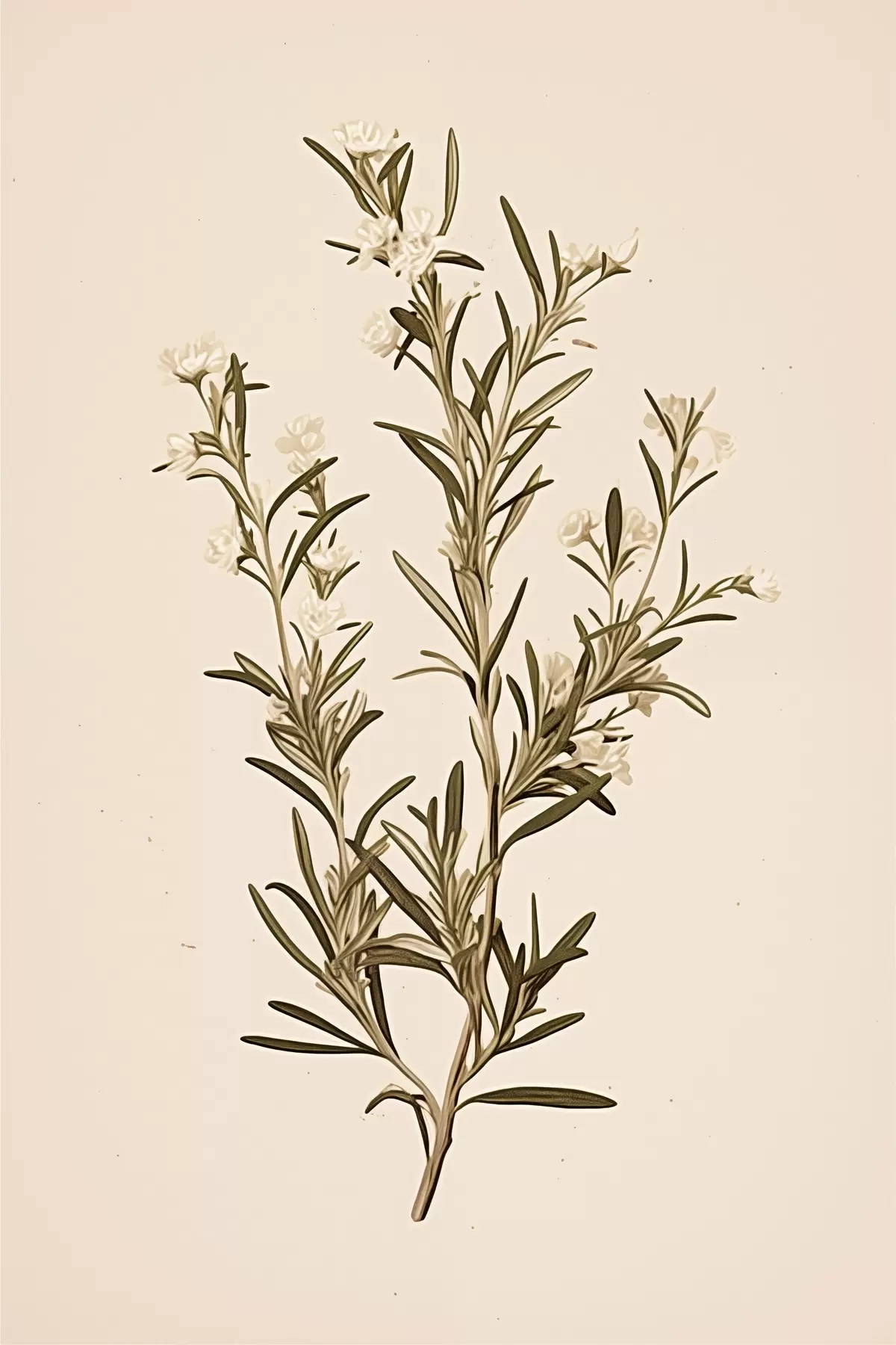 Obraz botanické, béžové pozadí, bylina, minimální, rostlina, zelené listy, stonek, větev Č. s45098