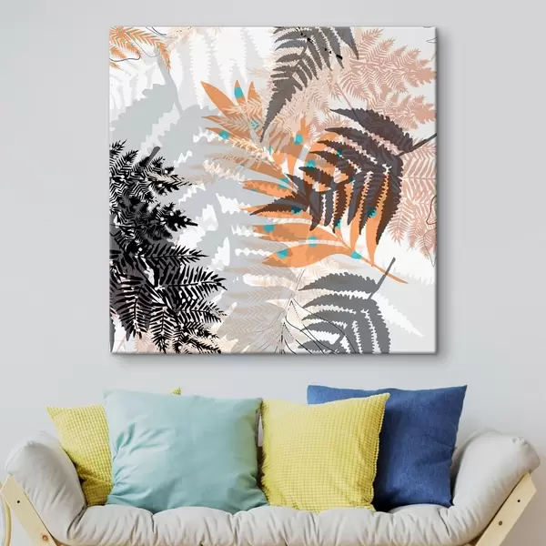 Obraz zeleň džungle, moderní styl, line art, vrstvené rostliny, tlumené barvy, příroda Č. s45102