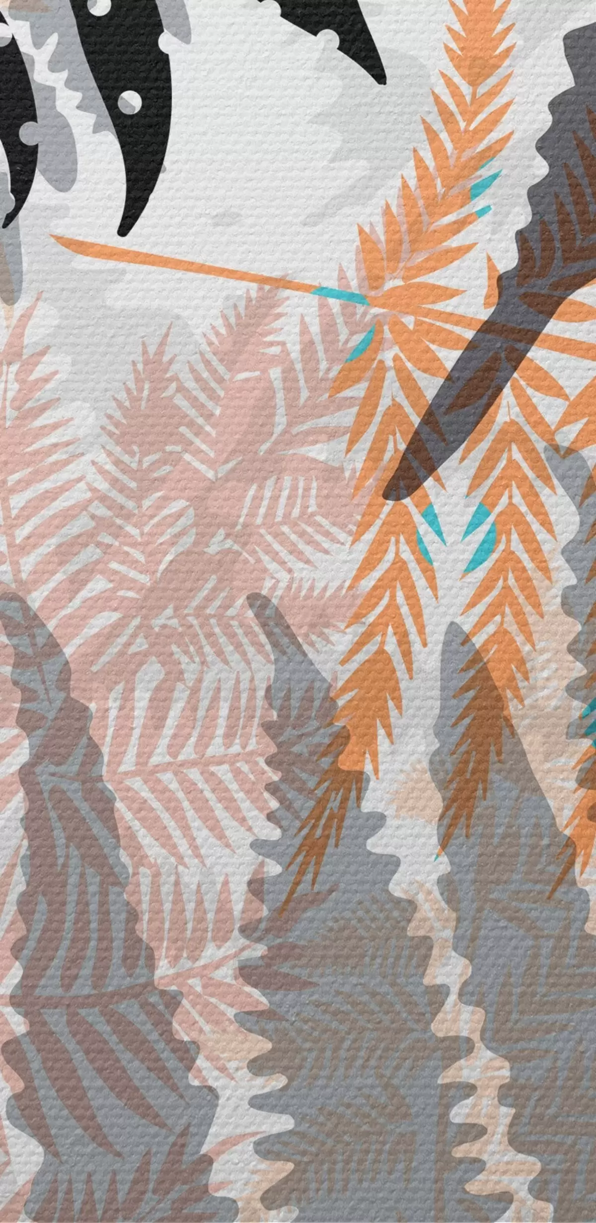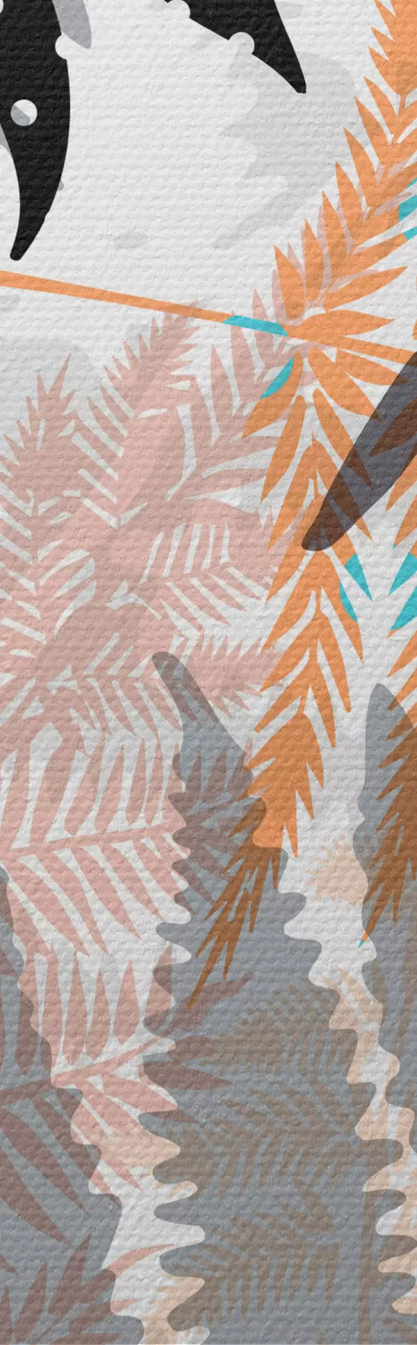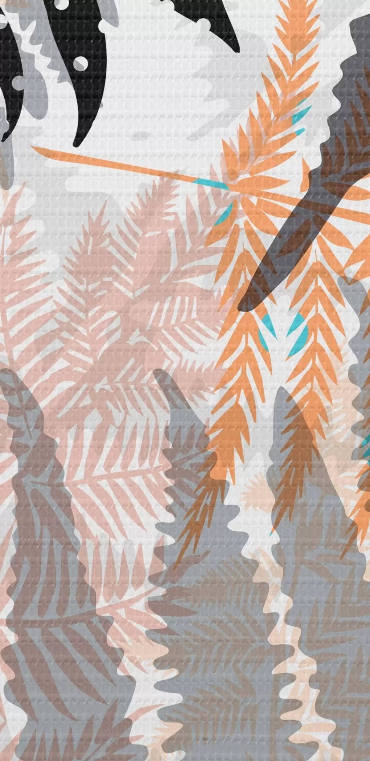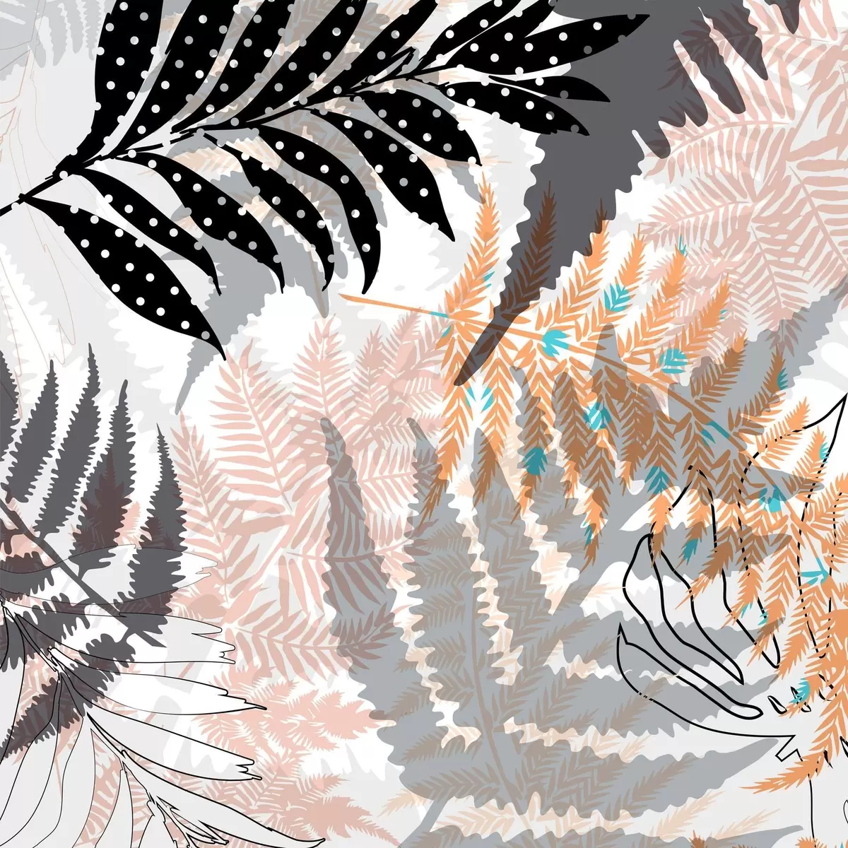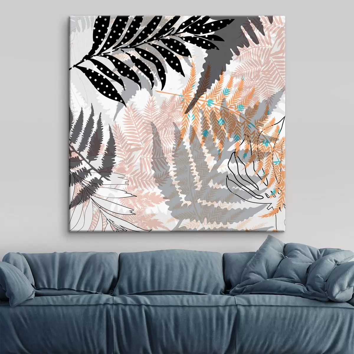 Obraz tropické listy, grafika, textura, béžová a černá, silueta, současná, rostlina Č. s45103
