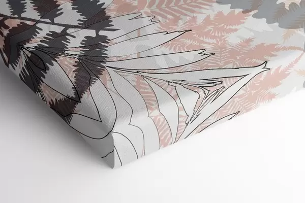 Obraz tropické listy, grafika, textura, béžová a černá, silueta, současná, rostlina Č. s45103
