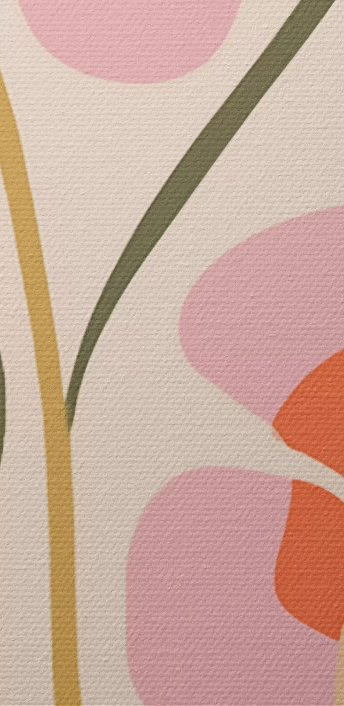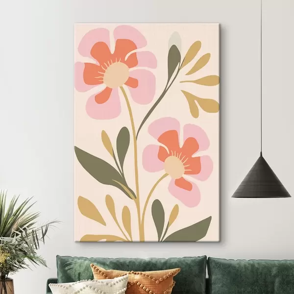 Obraz Stylizované růžové a oranžové květy se zelenými listy Č. s45140