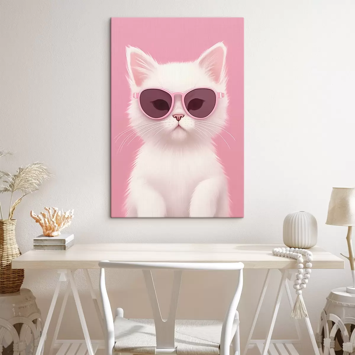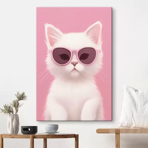 Obraz Bílá kočka v růžových brýlích Č. s45145
