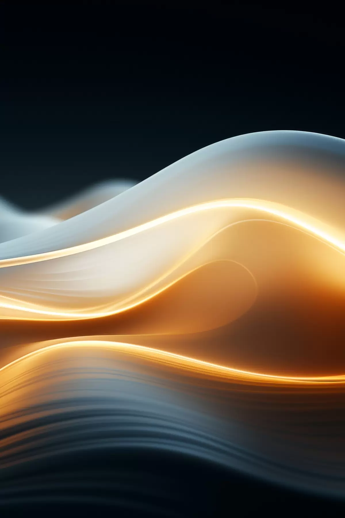 Obraz Abstraktní tekoucí tvary s oranžovými liniemi, hladké křivky a linie, dynamická kompozice, tmavé pozadí Č. s45183