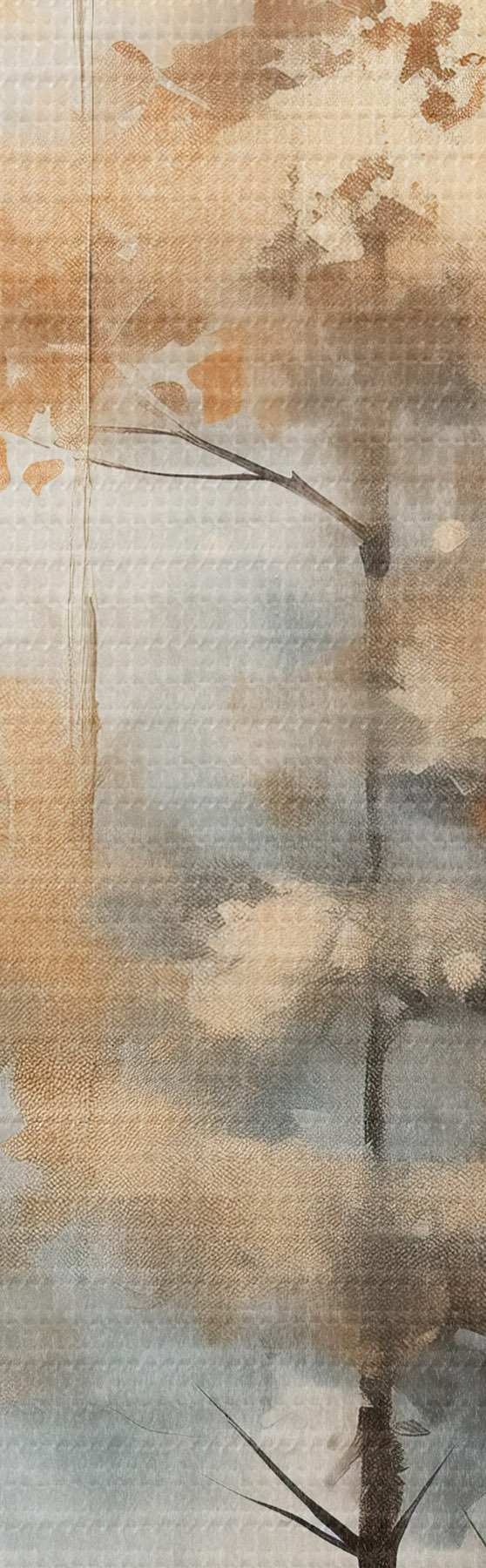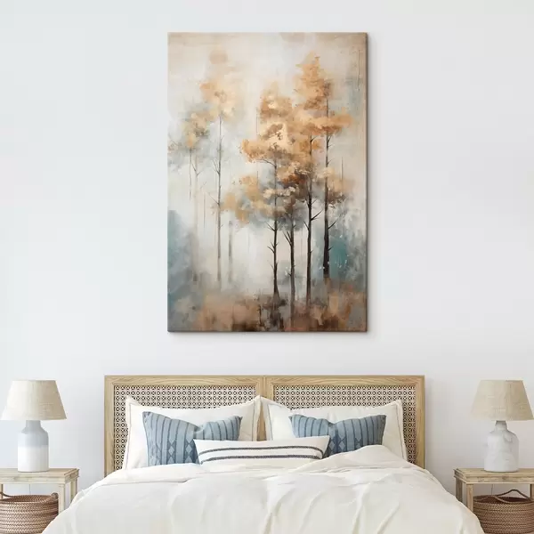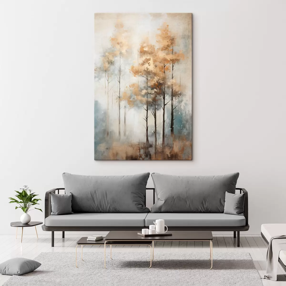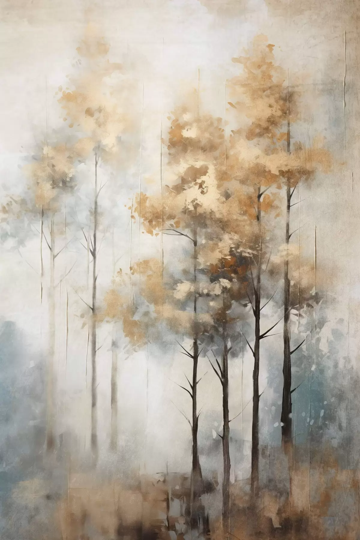 Obraz Texturované vysoké stromy se žlutými listy v lese , pozadí je směs jemných modrých a hnědých tónů Č. s45187