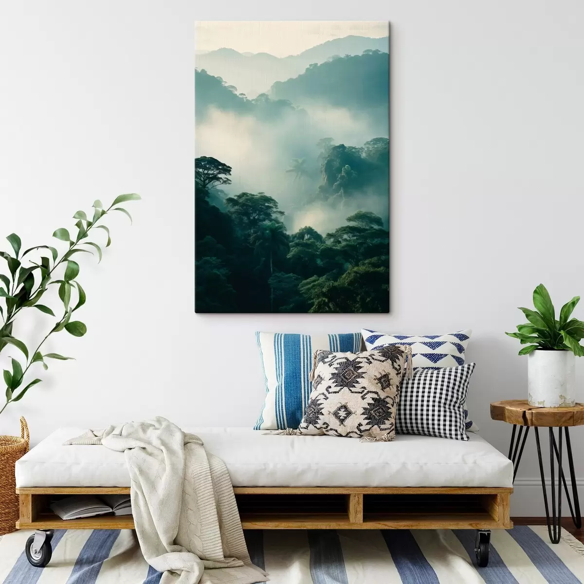 Obraz Tropický deštný prales se svěžími zelenými stromy a hustou vrstvou mlhy, která vytváří atmosférické prostředí Č. s45189