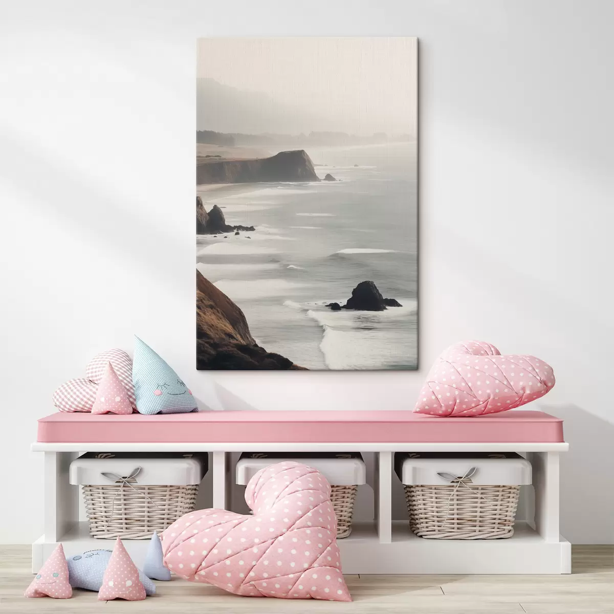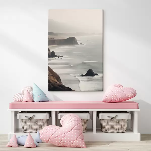 Obraz Skalnaté útesy a mořské pobřeží, vlny narážející na břeh,krajina s náladovou atmosférou, zemité tóny Č. s45194