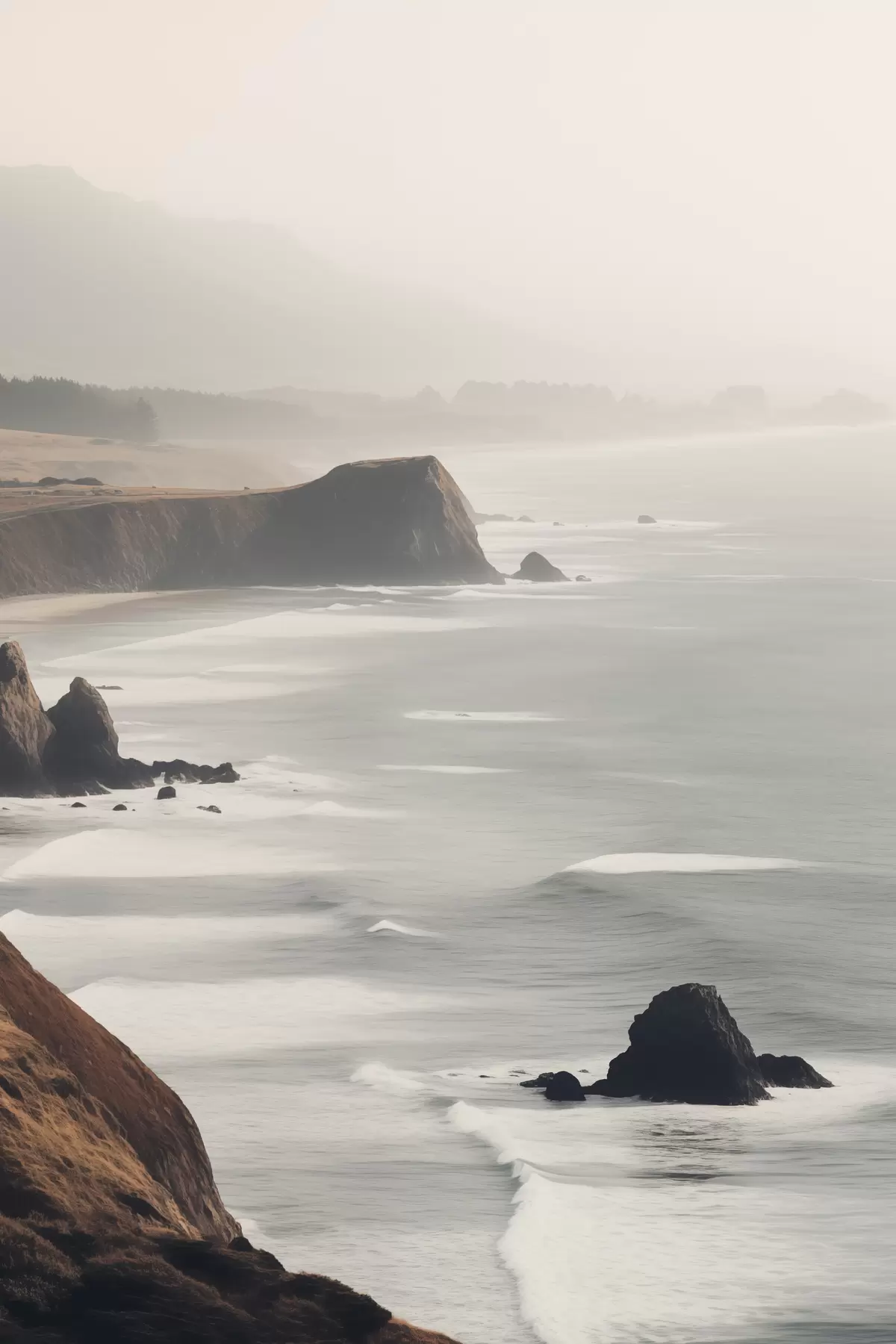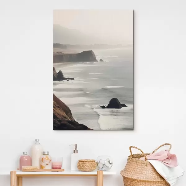 Obraz Skalnaté útesy a mořské pobřeží, vlny narážející na břeh,krajina s náladovou atmosférou, zemité tóny Č. s45194