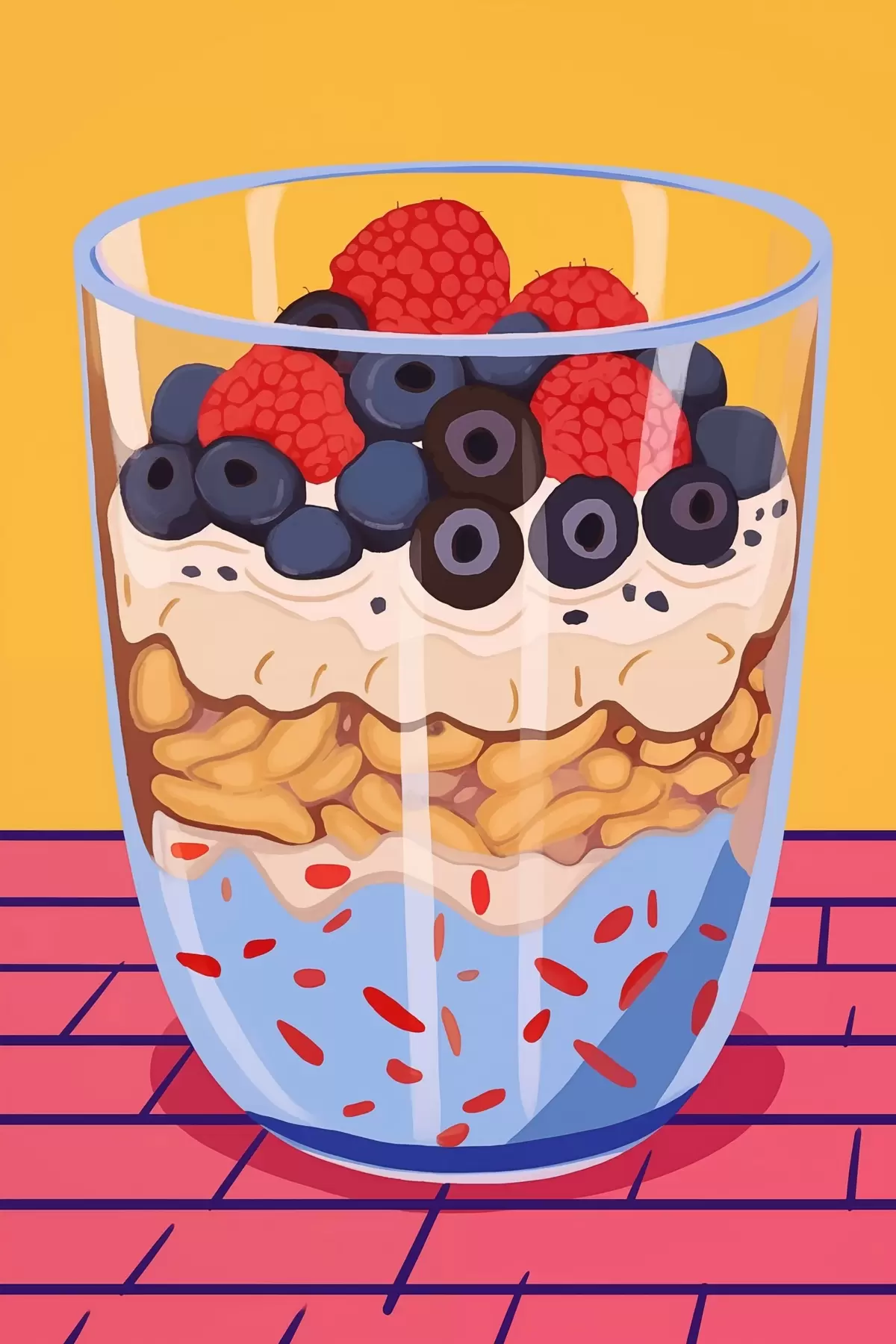 Obraz Sklenice s jogurtem, bobulemi a cereáliemi Č. s45216