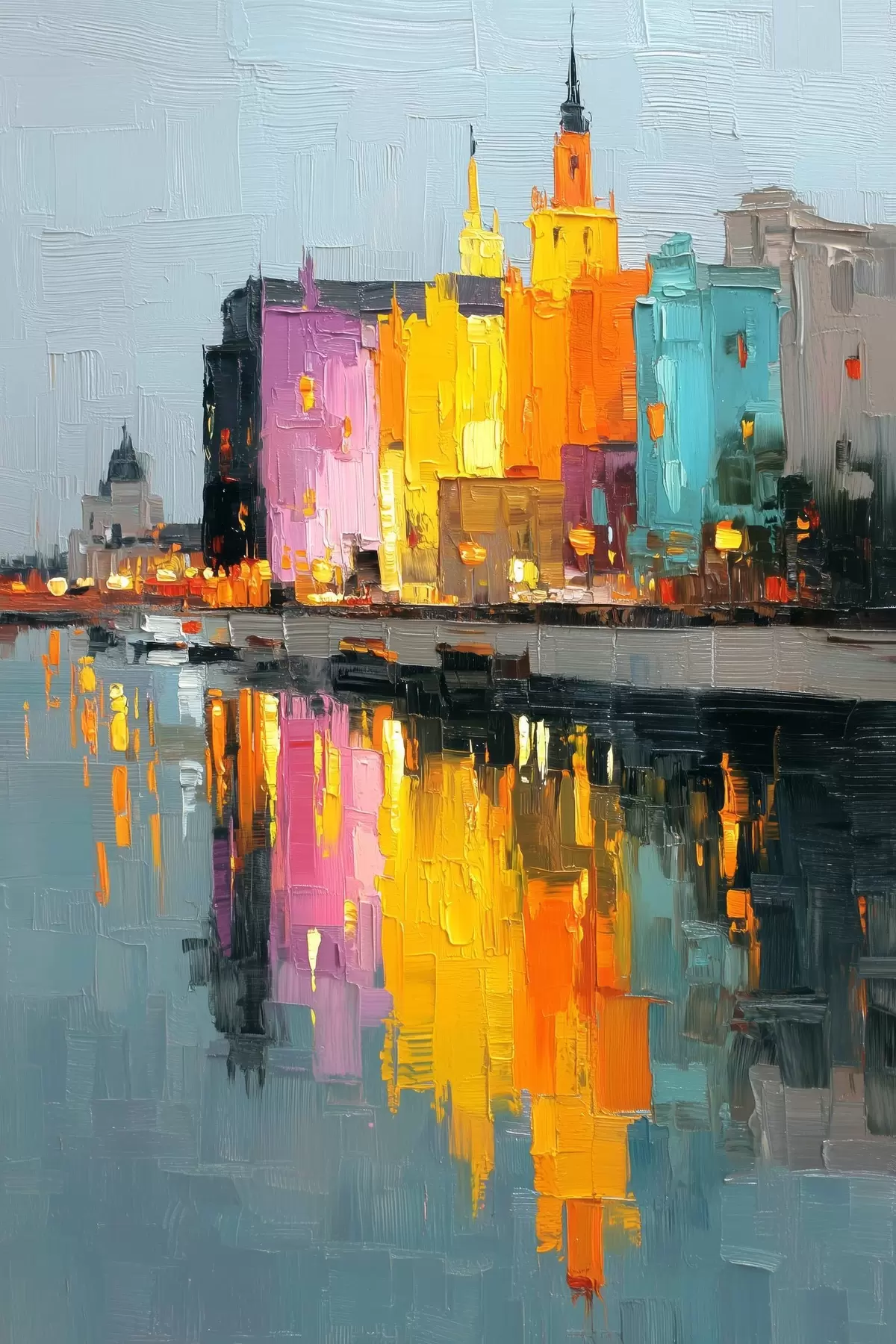 Obraz Světla města: živá krajina ve stylu impasto Č. s45242