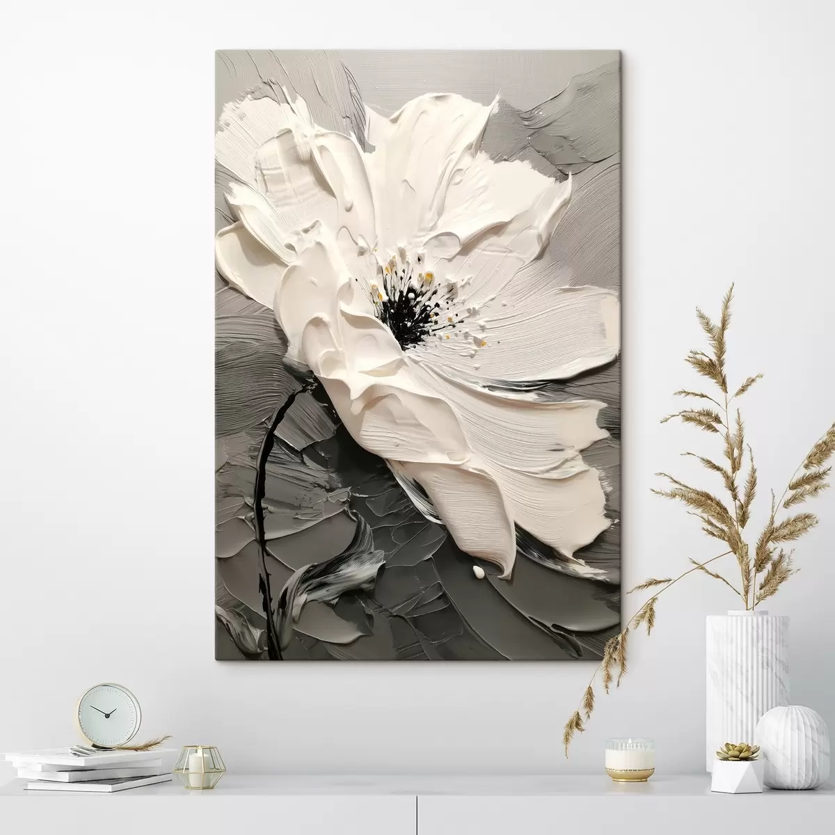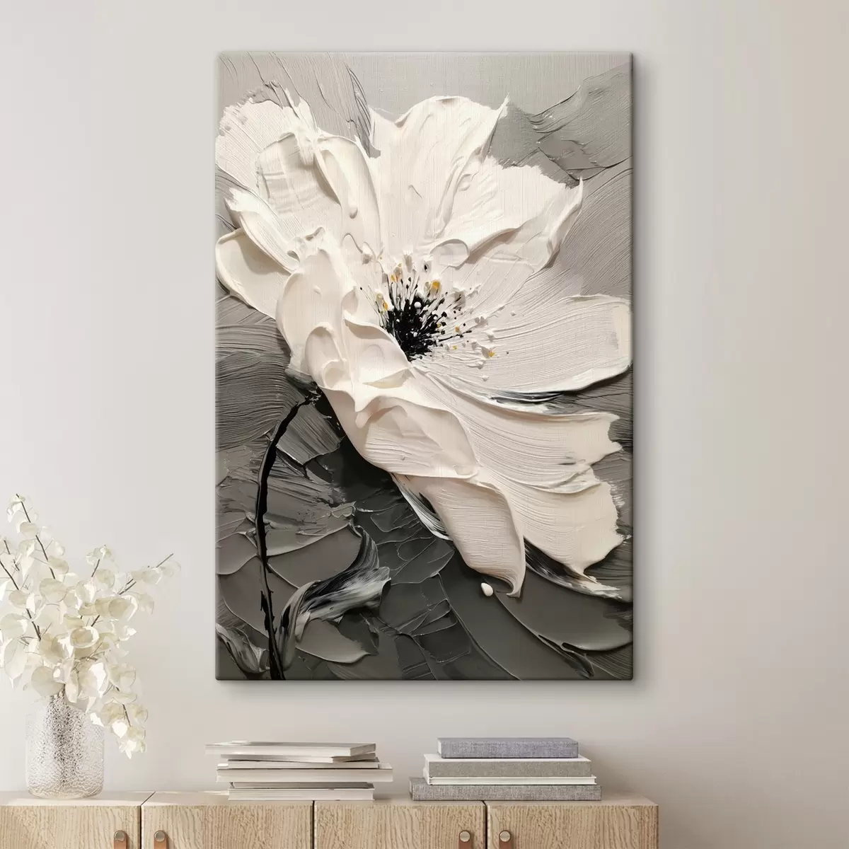 Obraz Elegantní květ: moderní malba s reliéfní texturou Č. s45246