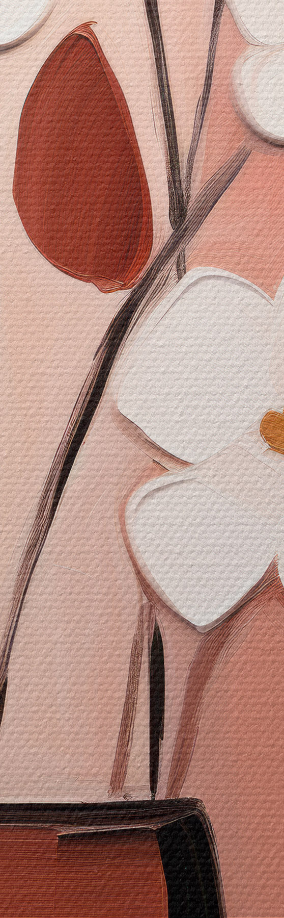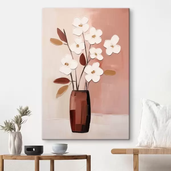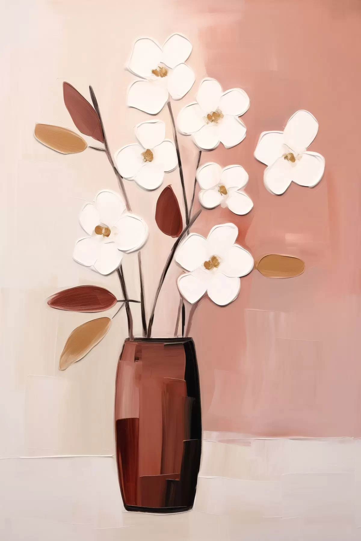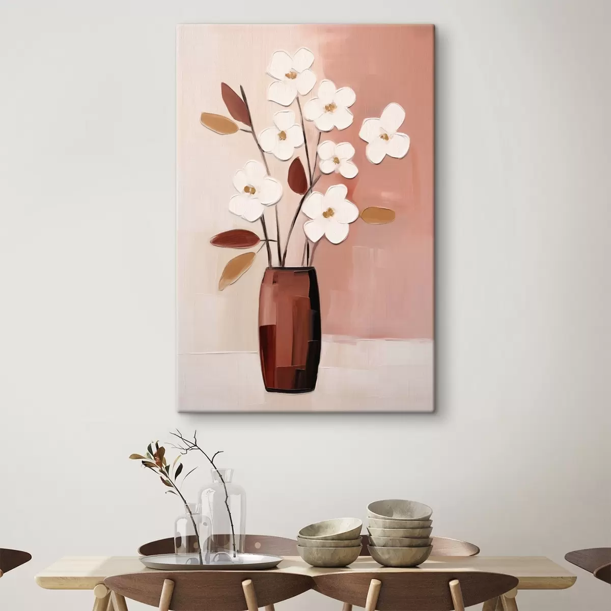 Obraz Bílé květy v tmavé váze: moderní květinová malba Č. s45255
