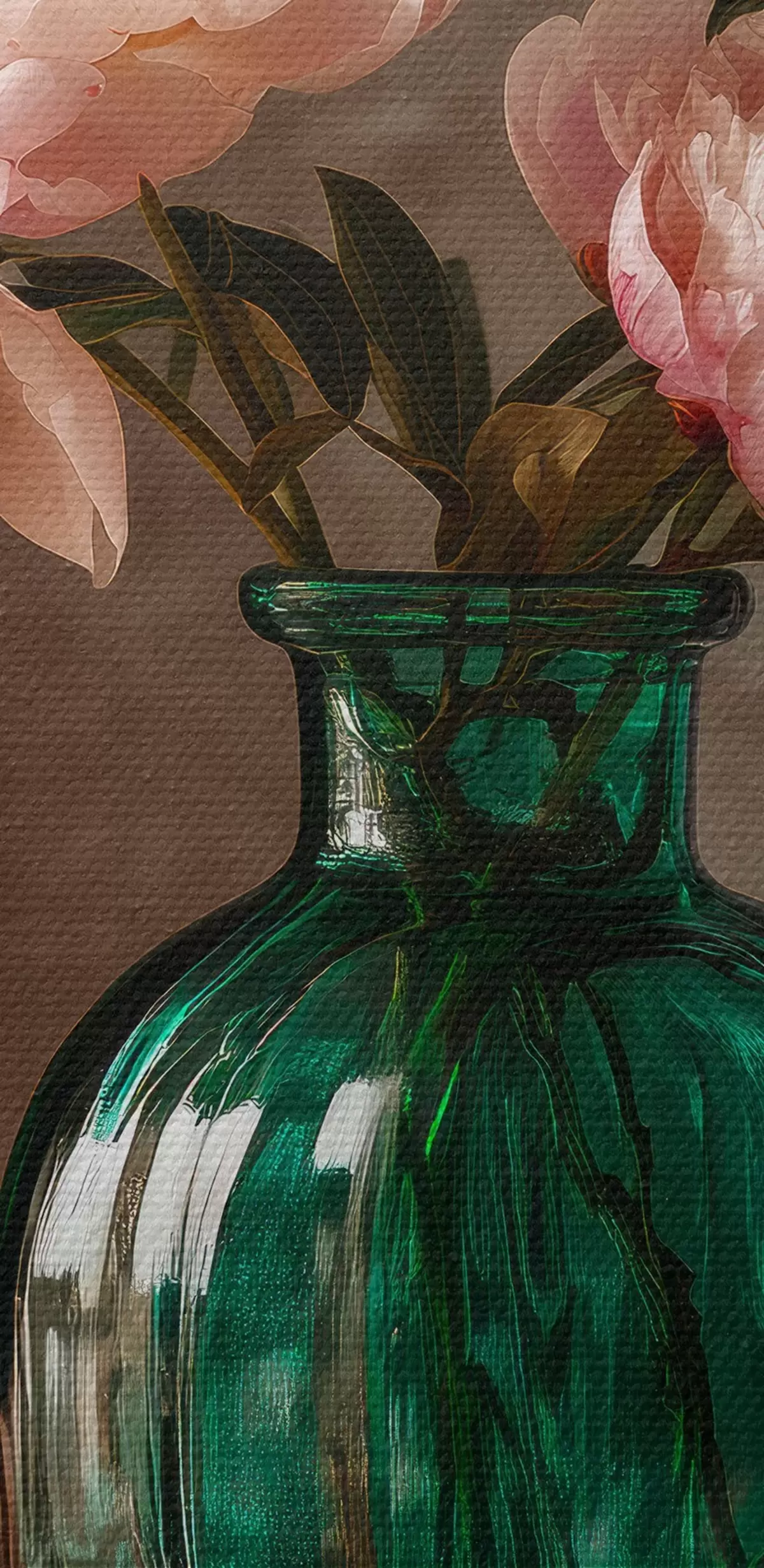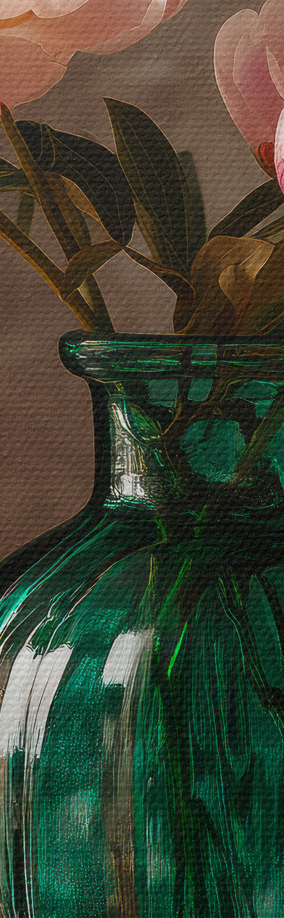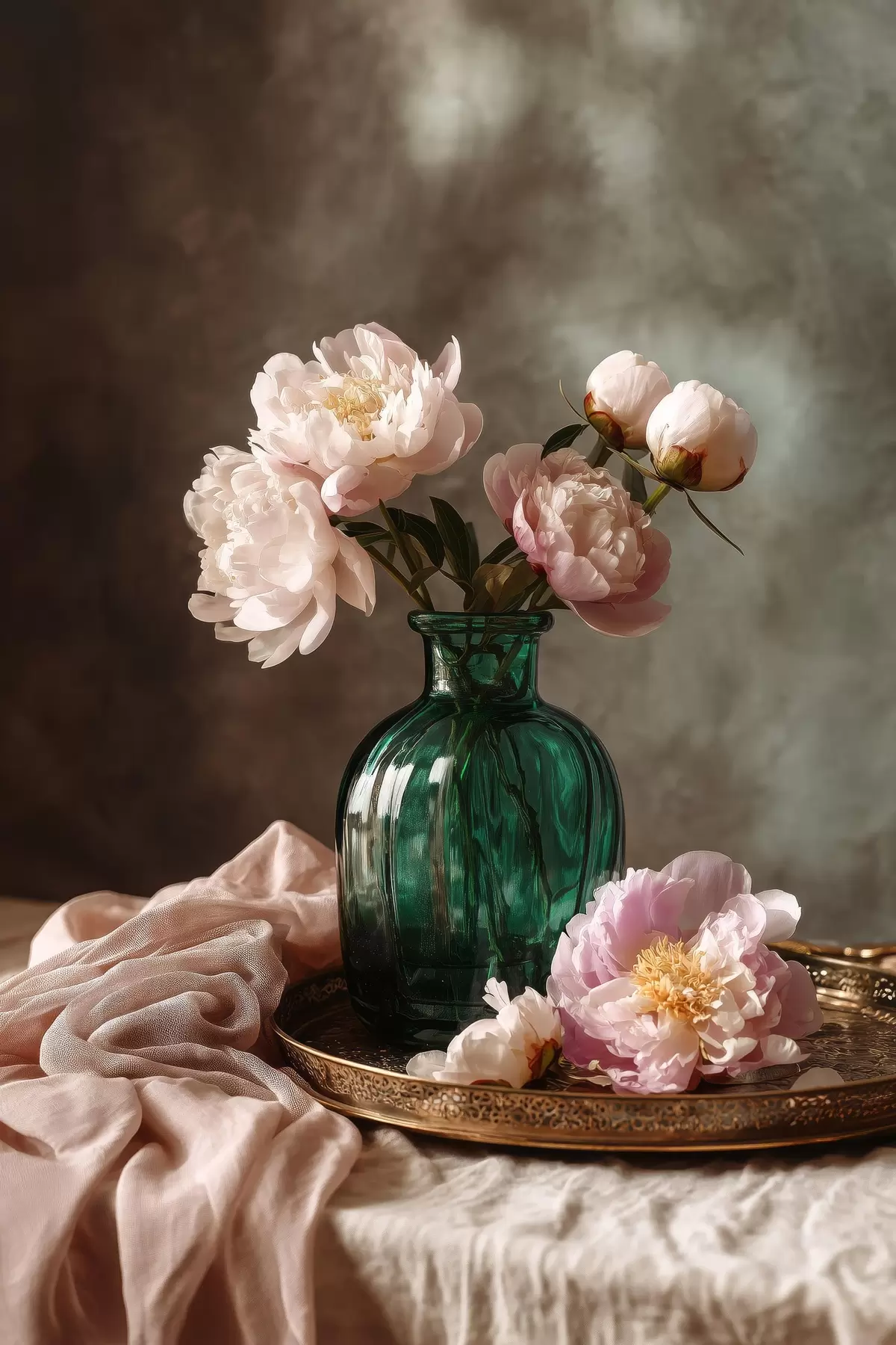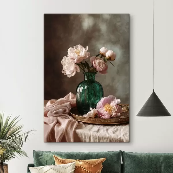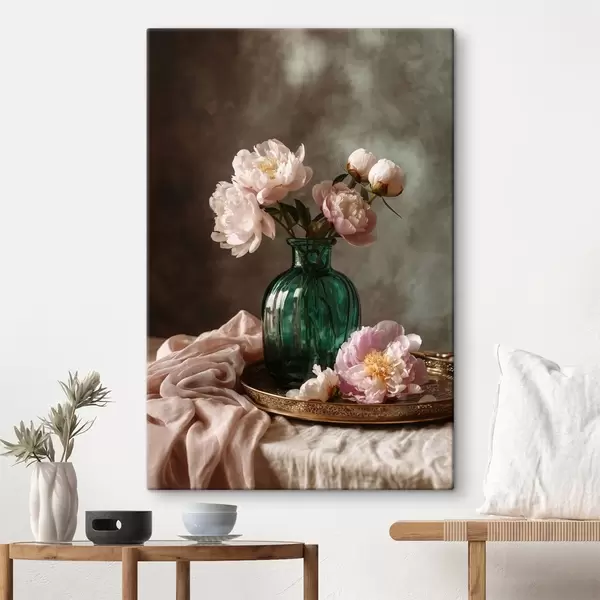 Obraz Jemné růžové pivoňky ve smaragdové váze Č. s45261