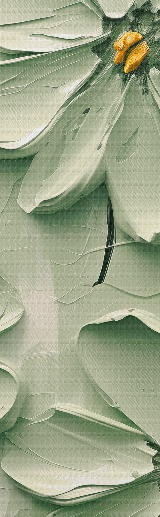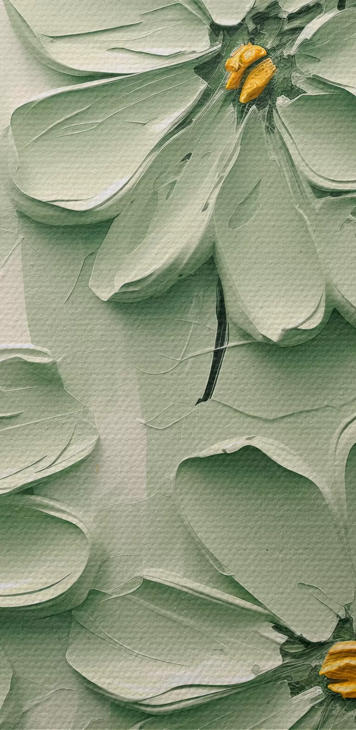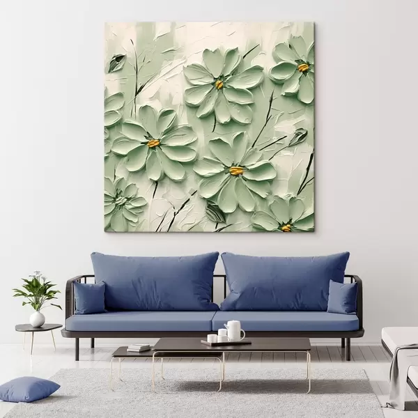 Obraz Zelené květy se žlutými středy malované hustými tahy štětce na světlém pozadí Č. s45265