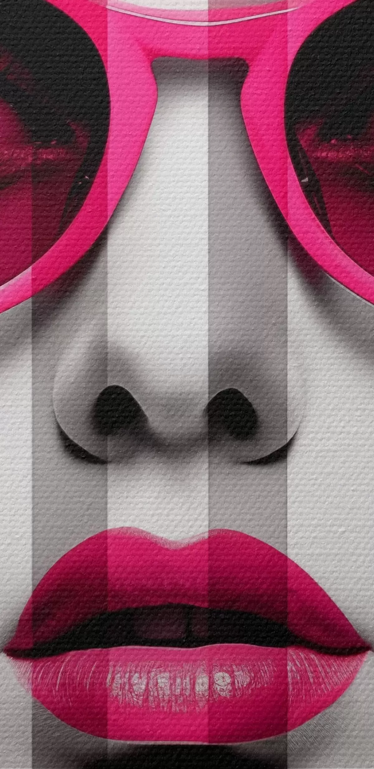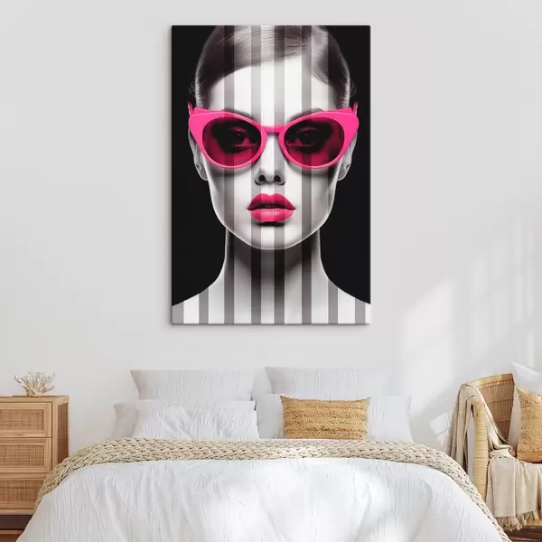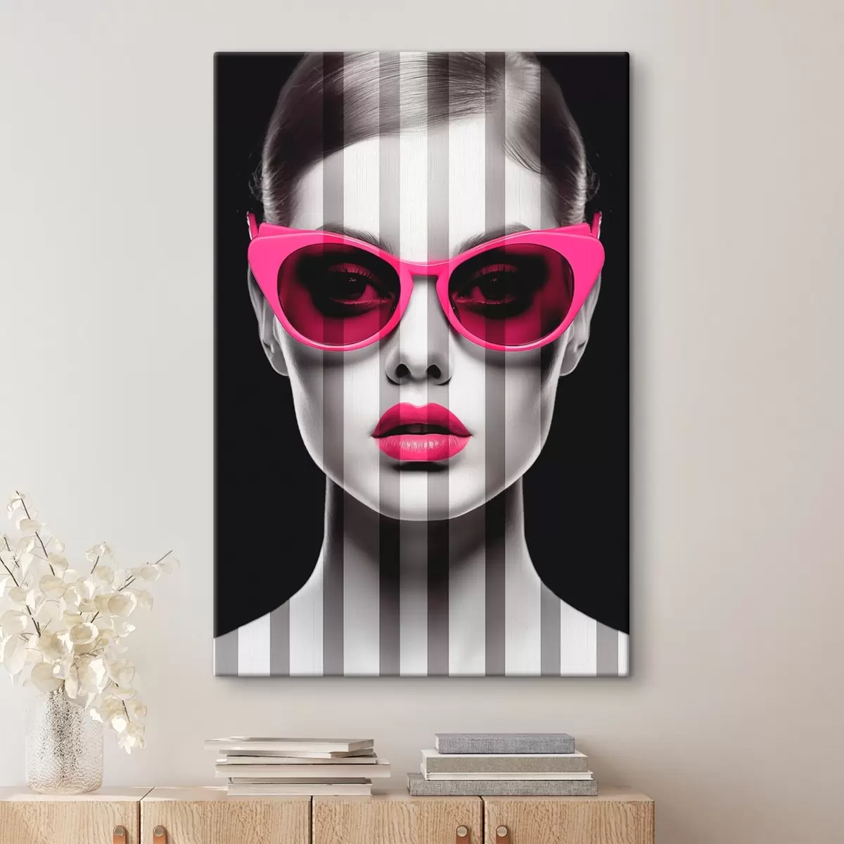 Obraz Žena s růžovými brýlemi s černými a bílými pruhy Č. s45315