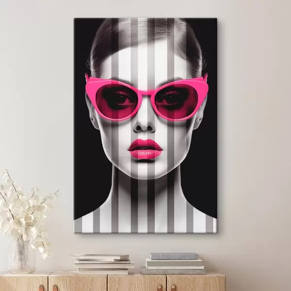 Obraz Žena s růžovými brýlemi s černými a bílými pruhy Č. s45315
