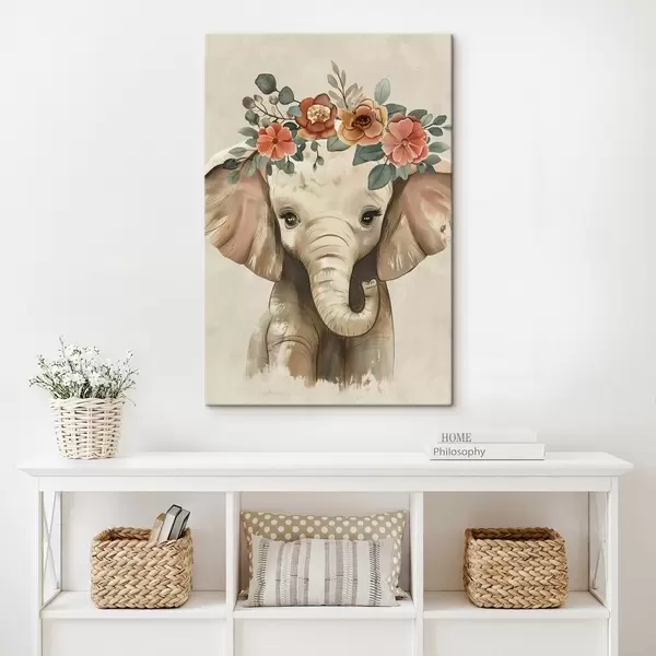 Obraz Roztomilý akvarelový slon s květinami Č. s45330