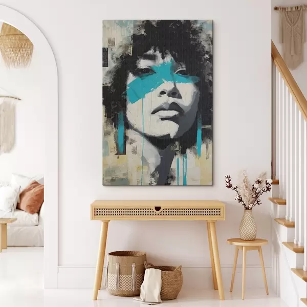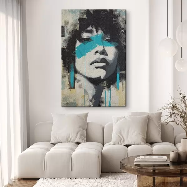Obraz Portrét ve smíšených médiích s fragmenty barevných tahů a textur Č. s45417