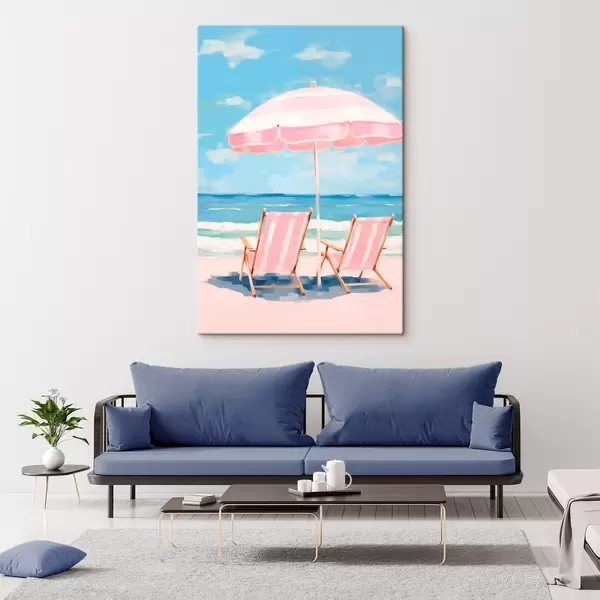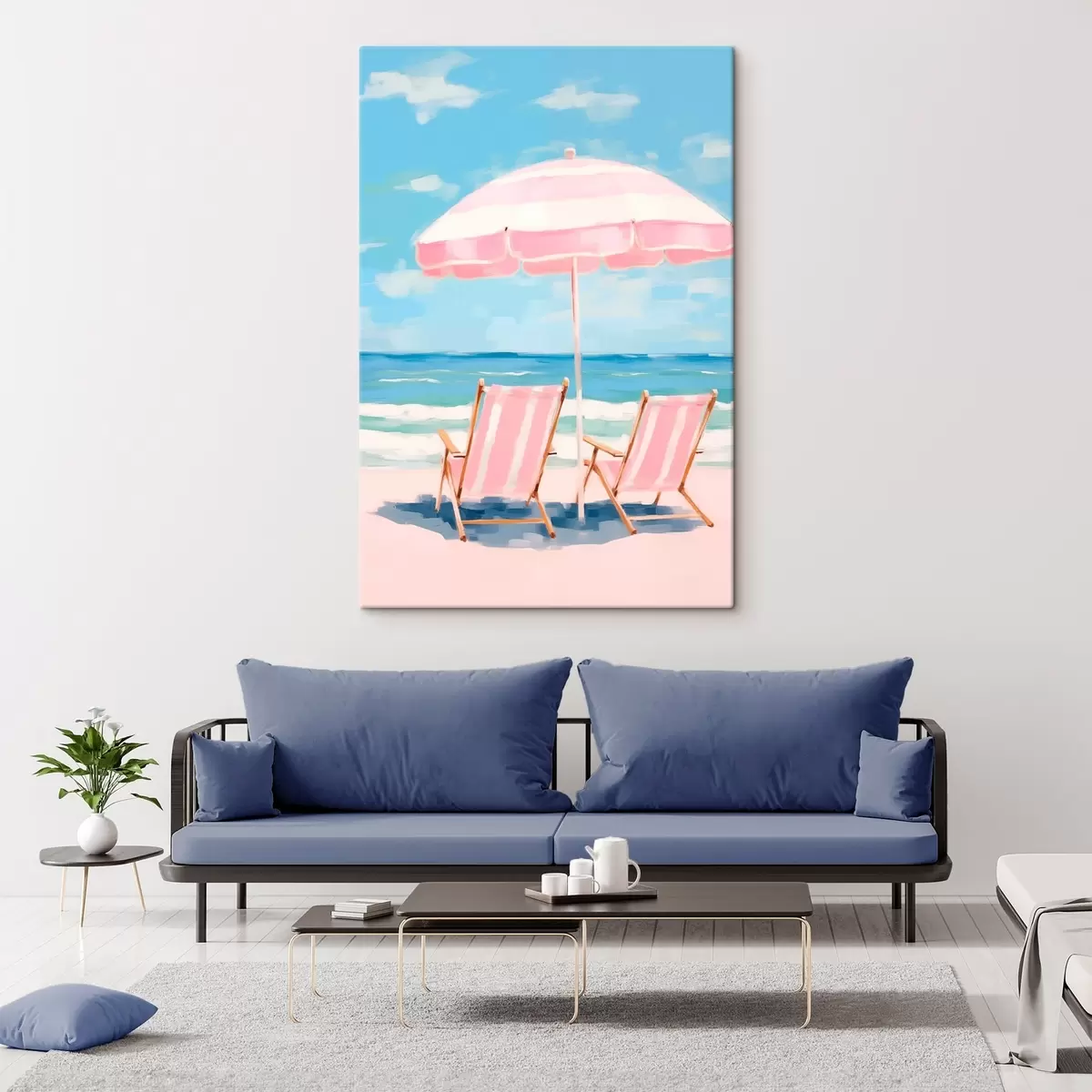 Obraz Slunečník a lehátka na pobřeží Č. s45442