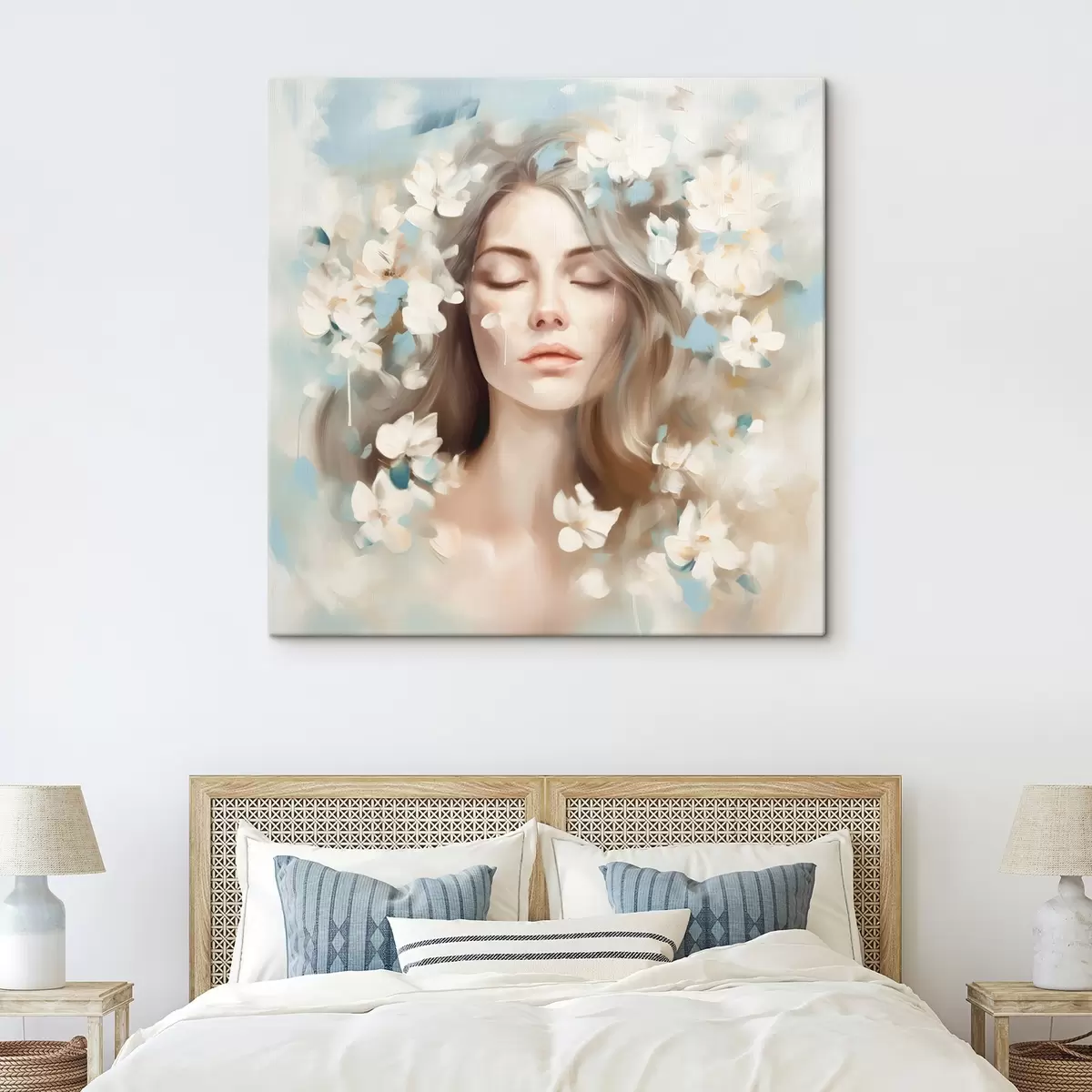 Obraz Abstraktní portrét ženy s květinami v podobě tahů štětcem Č. s45450
