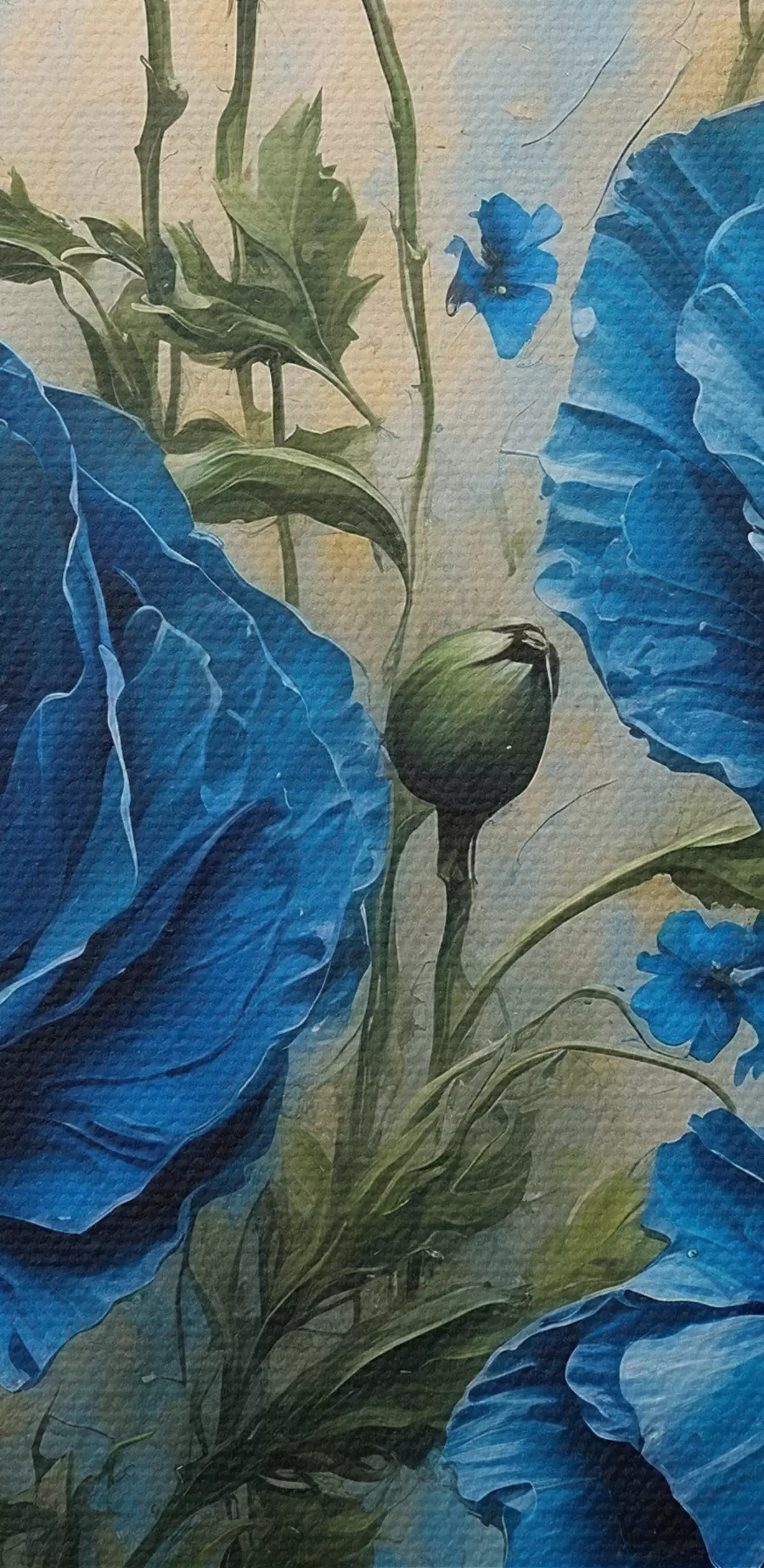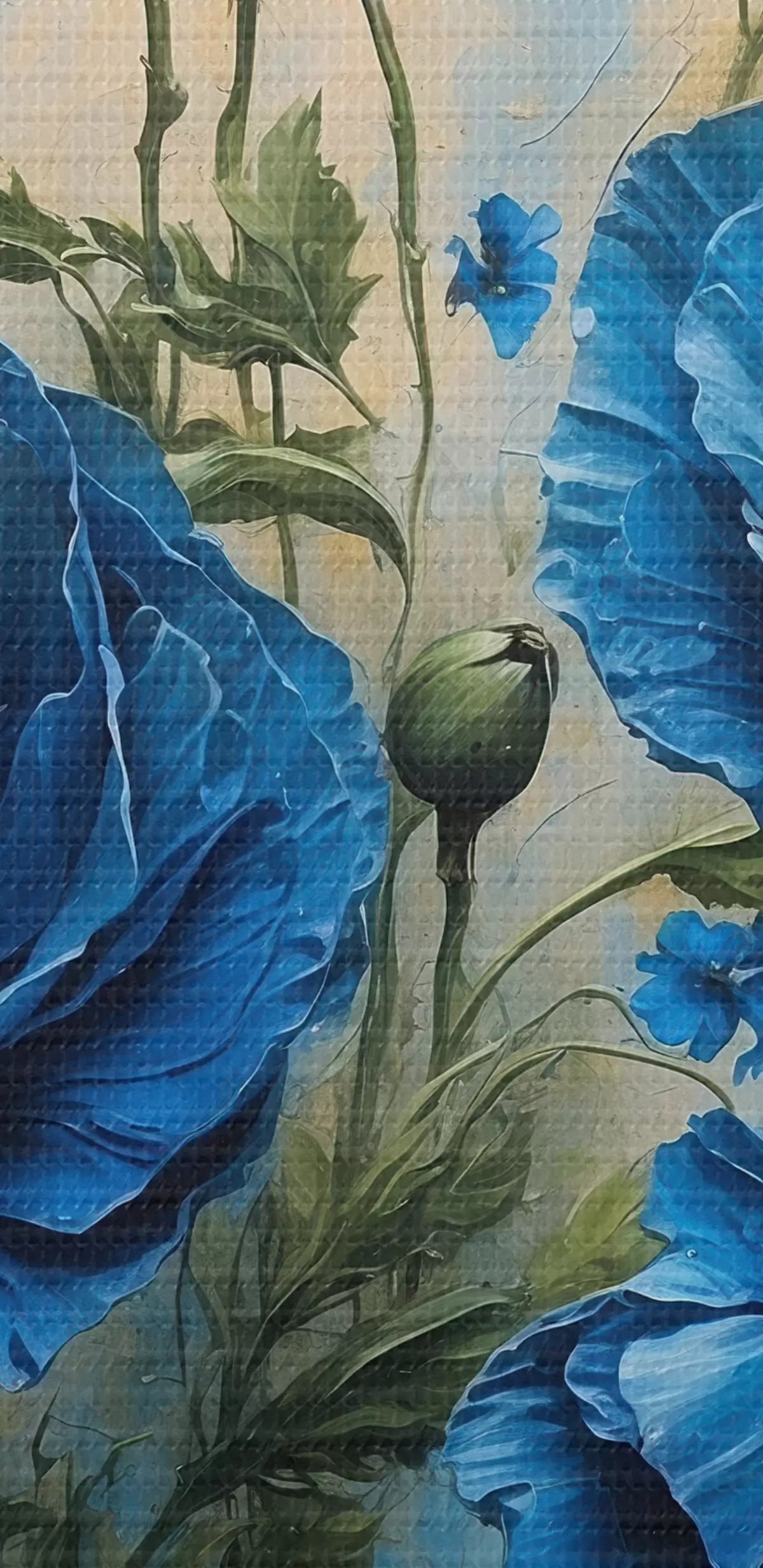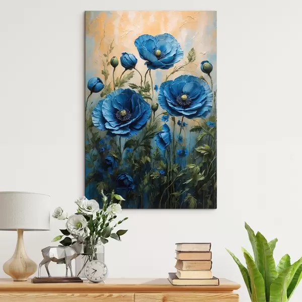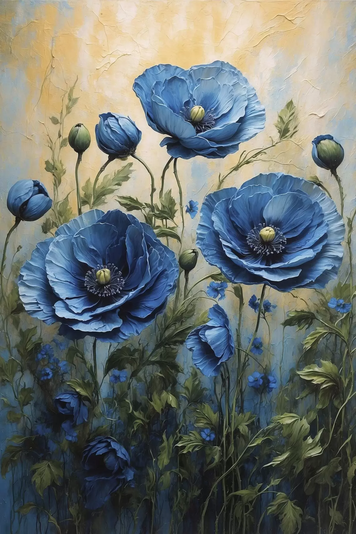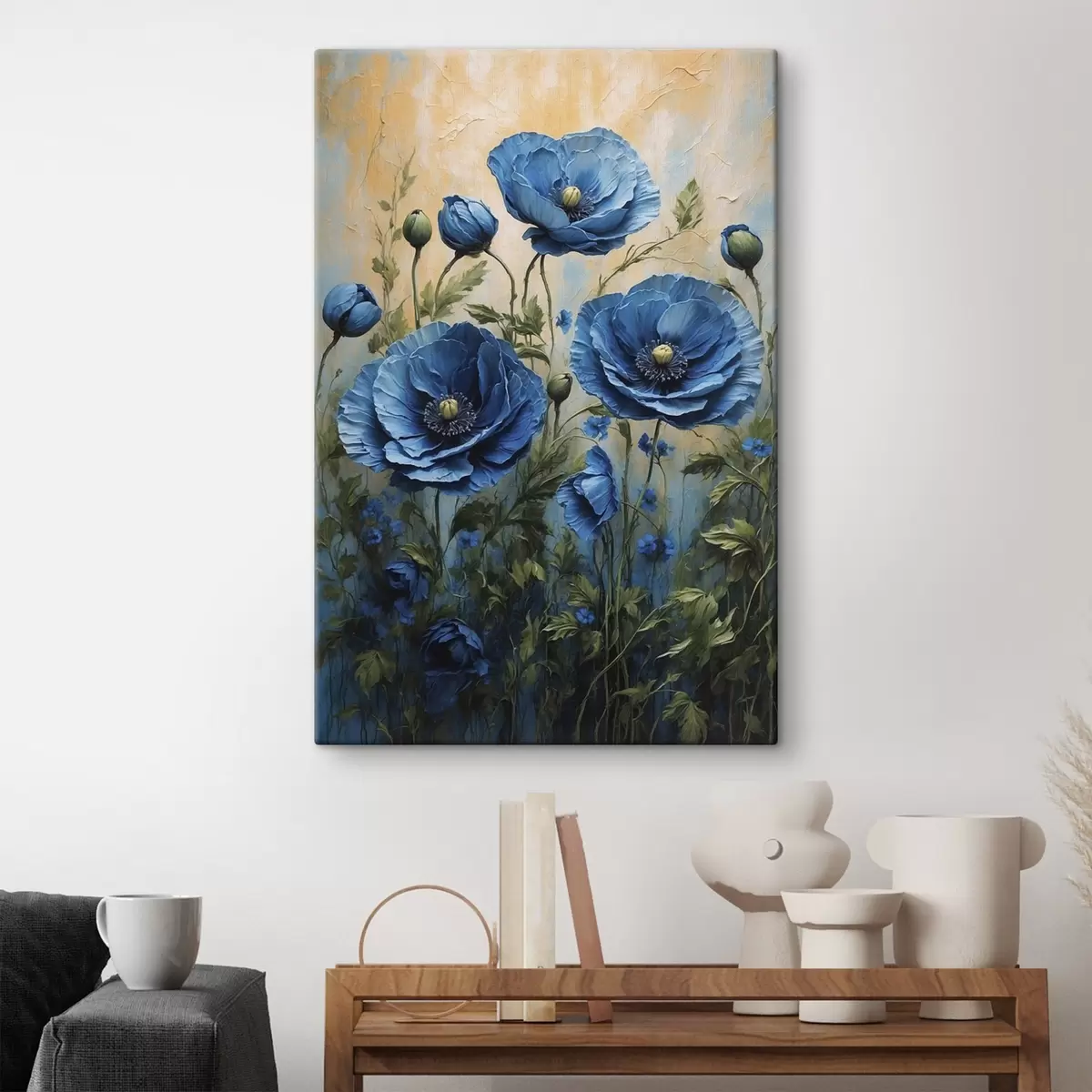 Obraz Velké modré máky s poupaty na světlém pozadí Č. s45488