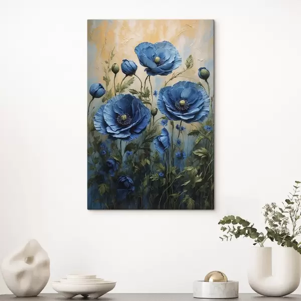 Obraz Velké modré máky s poupaty na světlém pozadí Č. s45488