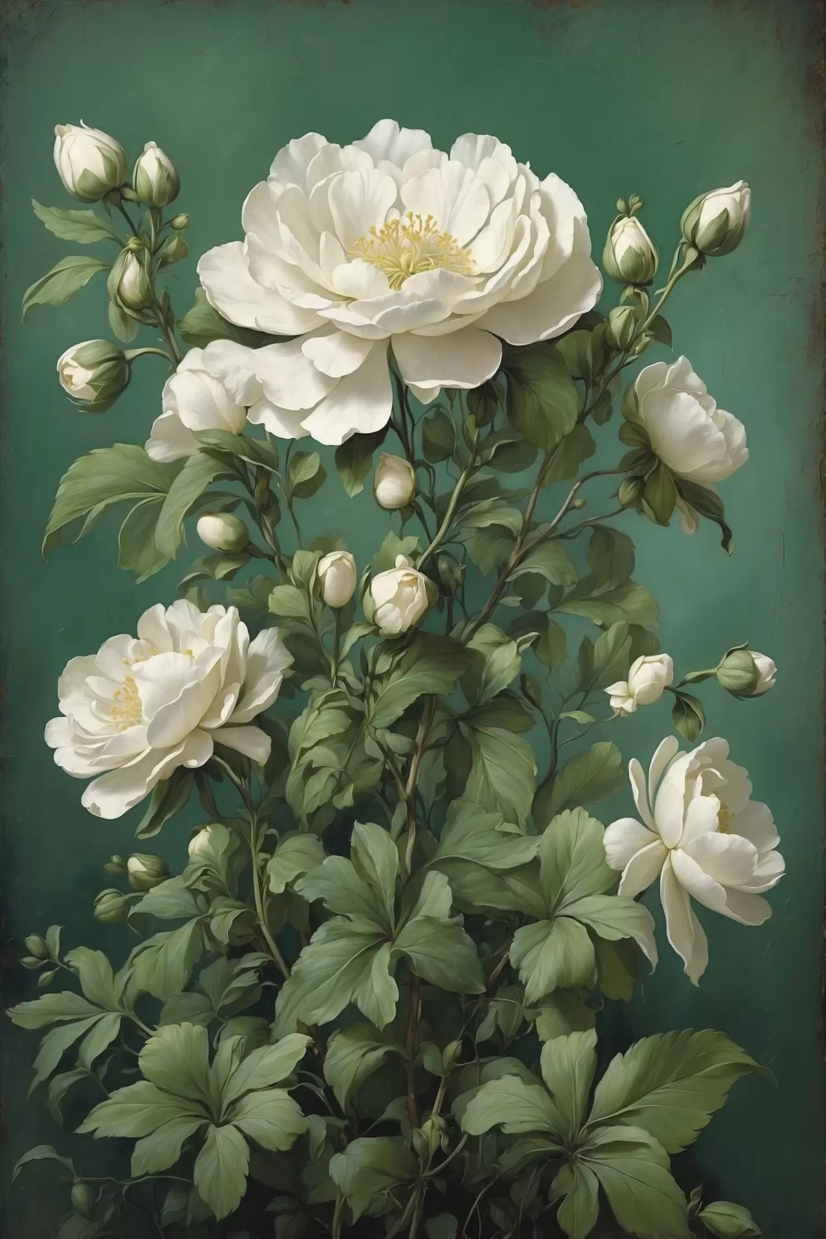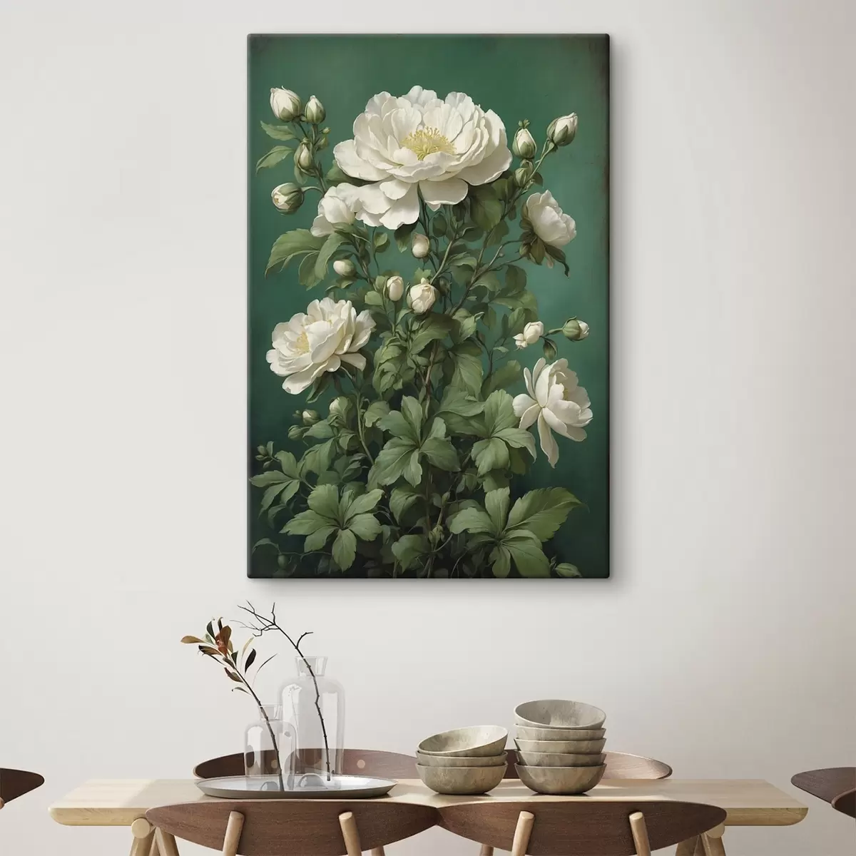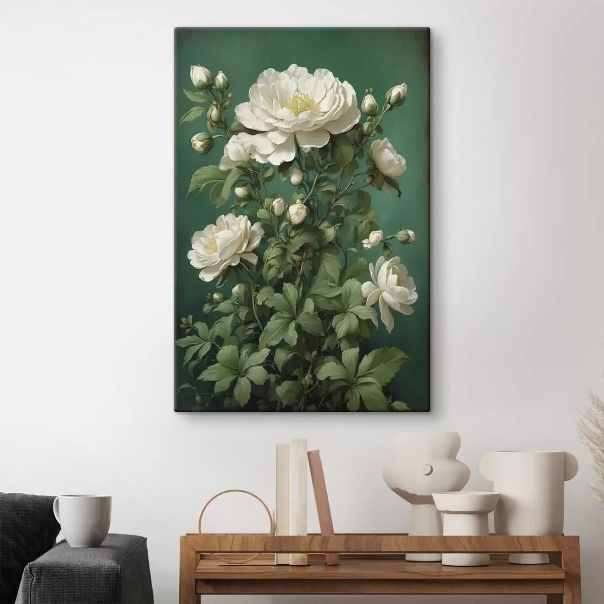 Obraz Krémové květy pivoněk na zeleném pozadí Č. s45491