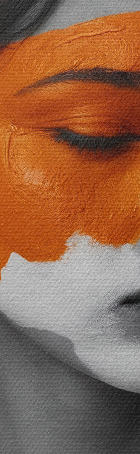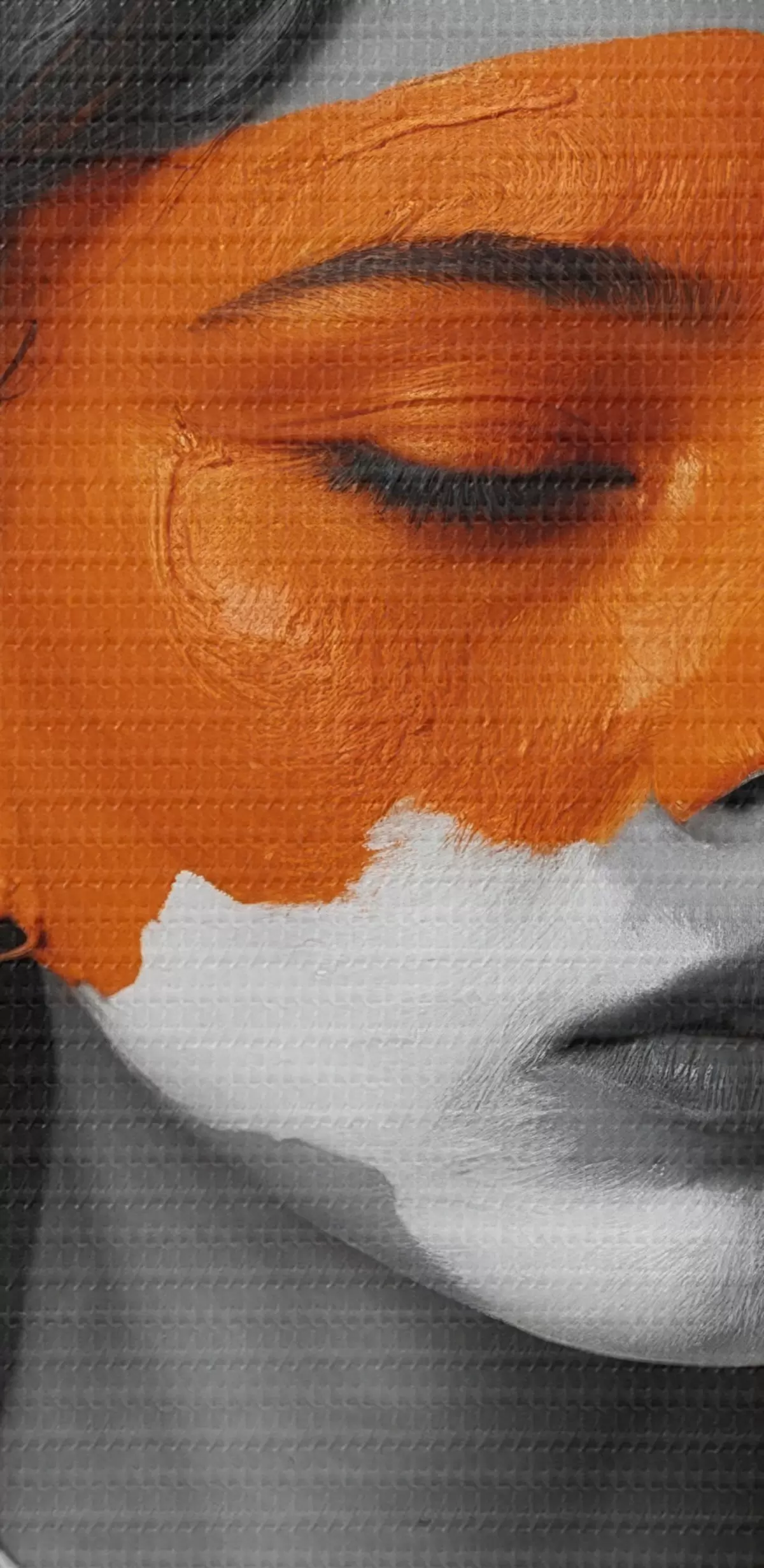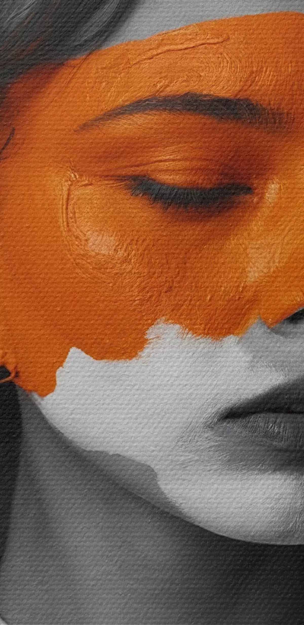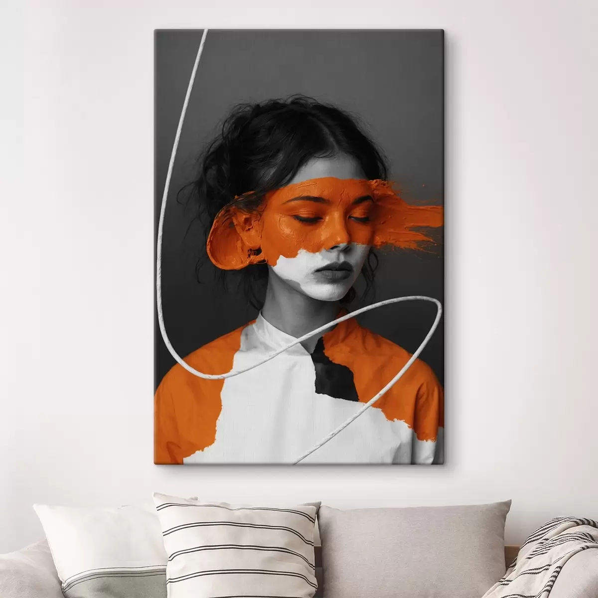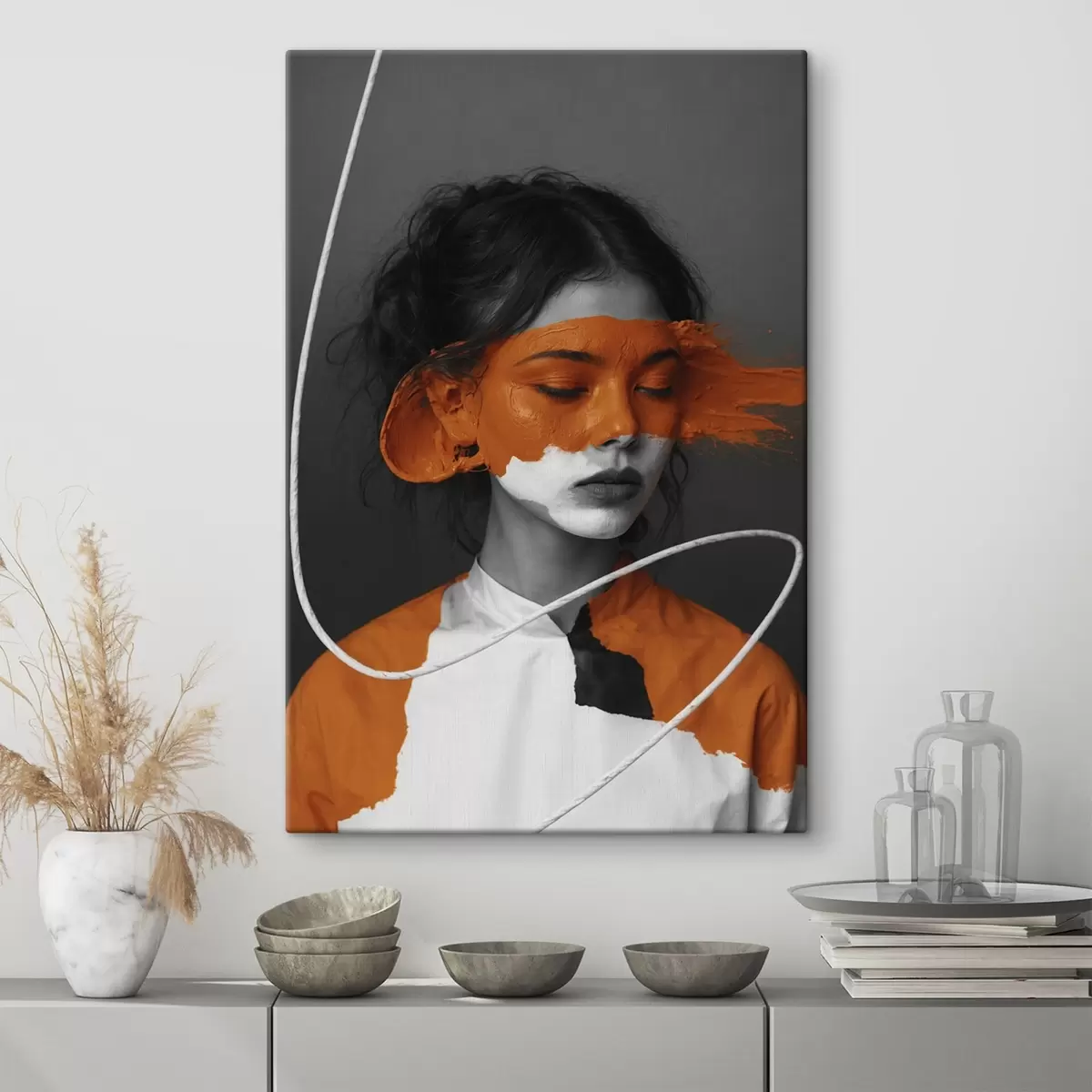 Obraz Portrét dívky s abstraktním oranžovým obrazem Č. s45495