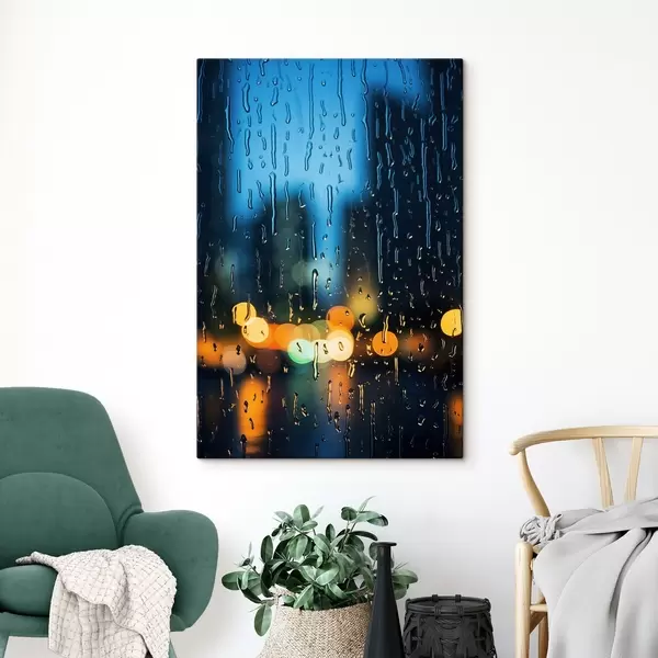 Obraz Kapky deště na okně s nočními světly Č. s45500