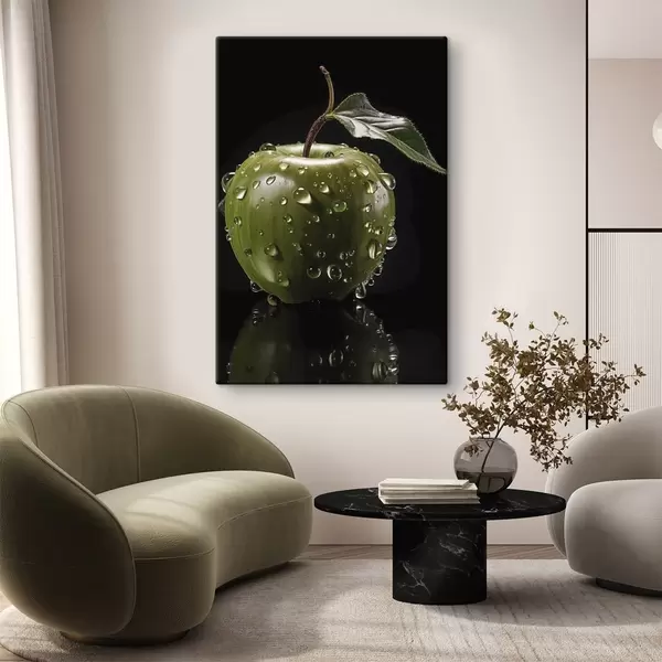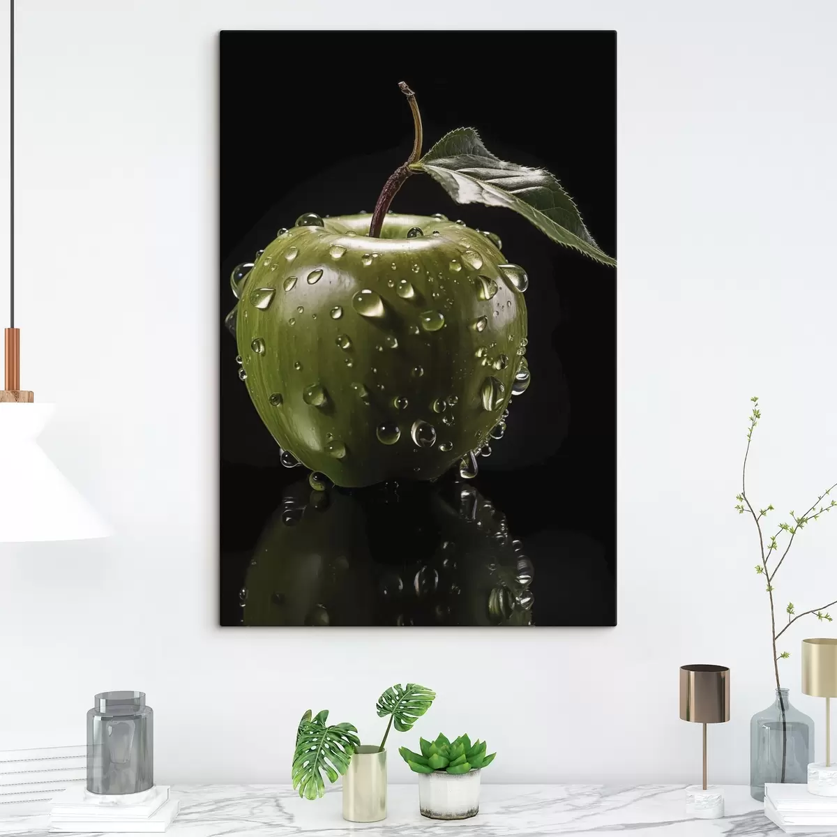 Obraz Zelené jablko s kapkami vody Č. s45506