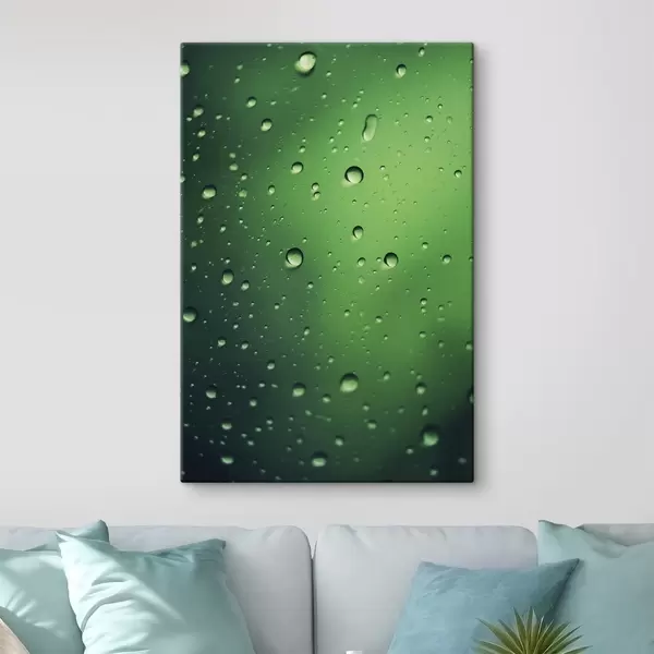 Obraz Kapky vody na zeleném skle zblízka Č. s45521