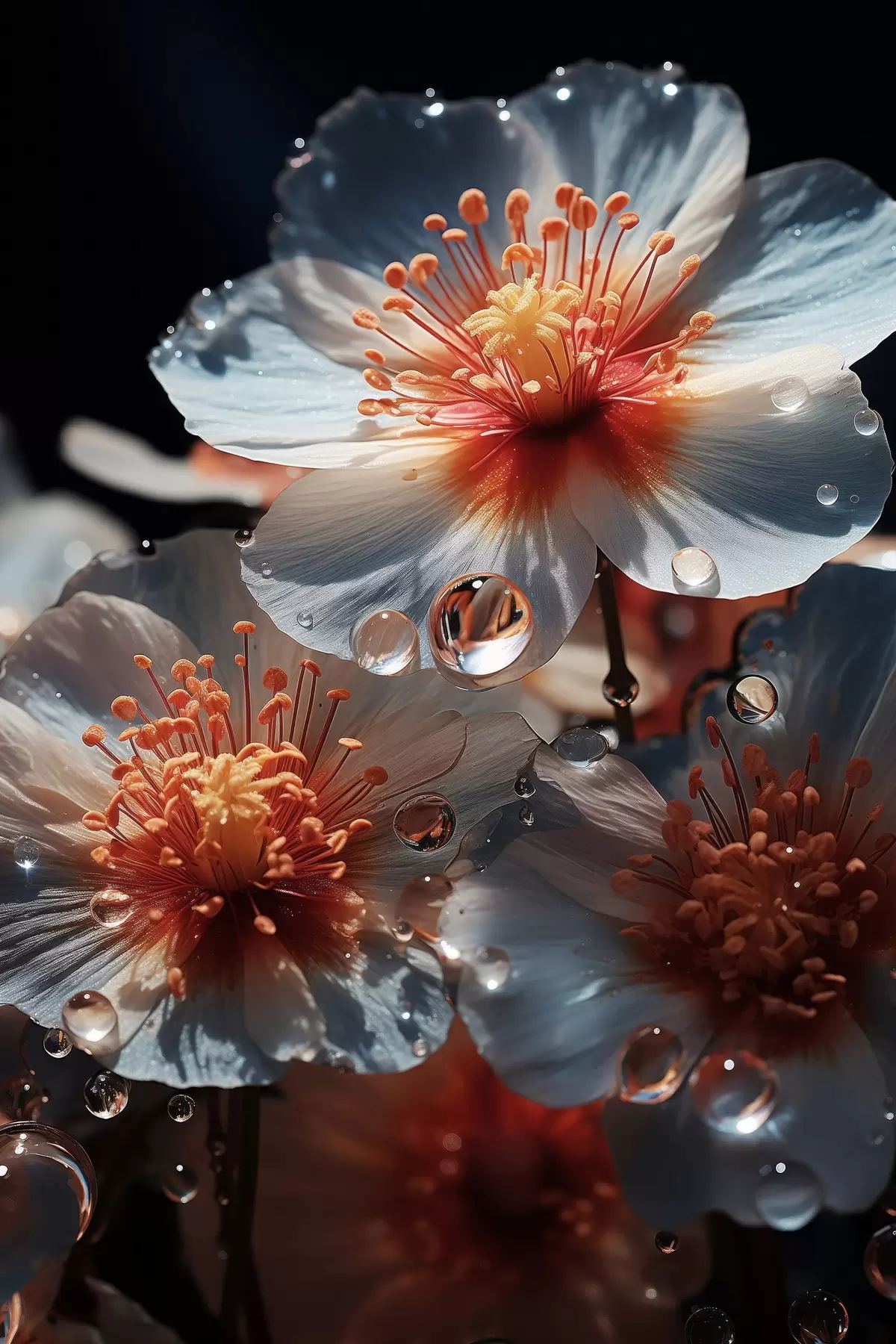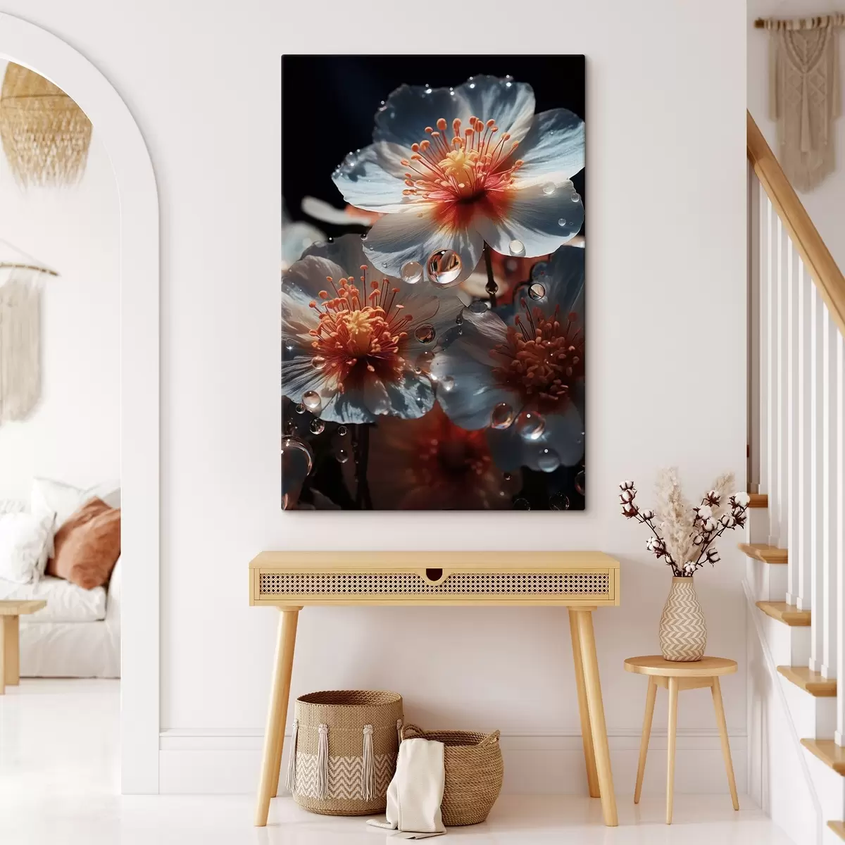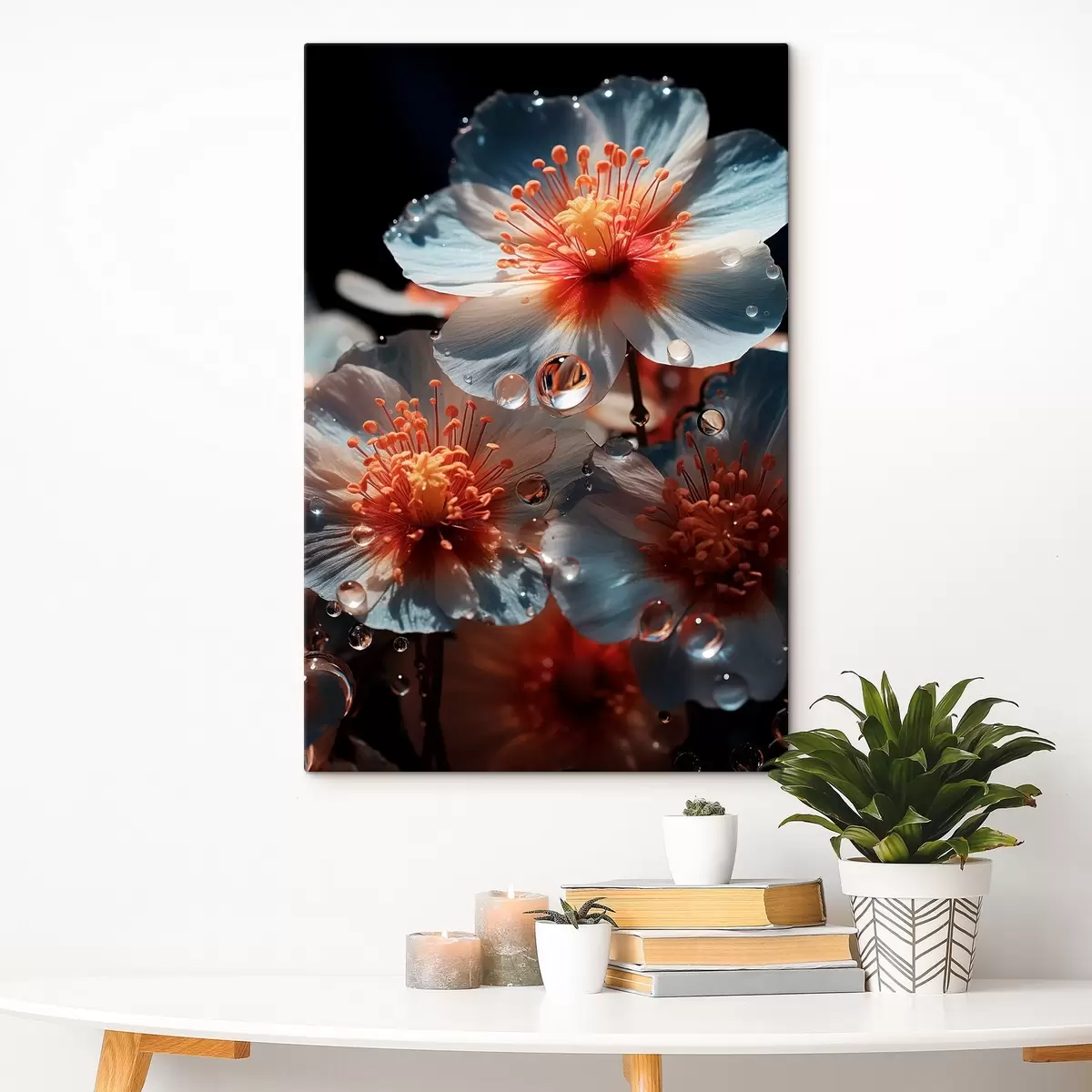 Obraz Květinový motiv: krása okvětních lístků s rosou na tmavém pozadí Č. s45529