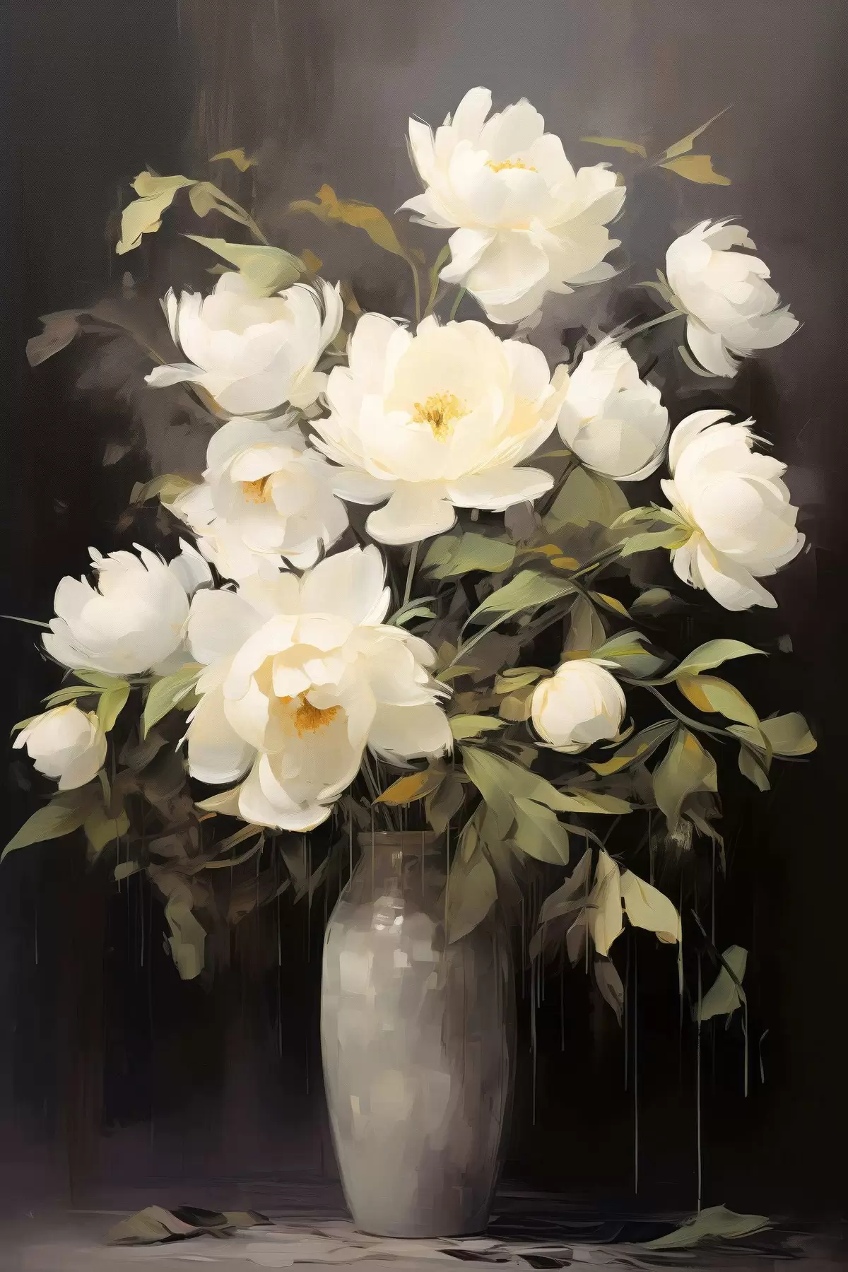 Obraz Jemné pivoňky ve váze: květinová kompozice ve stylu malby Č. s45532