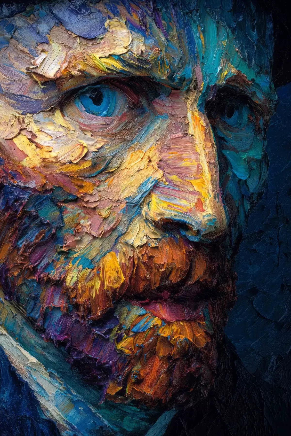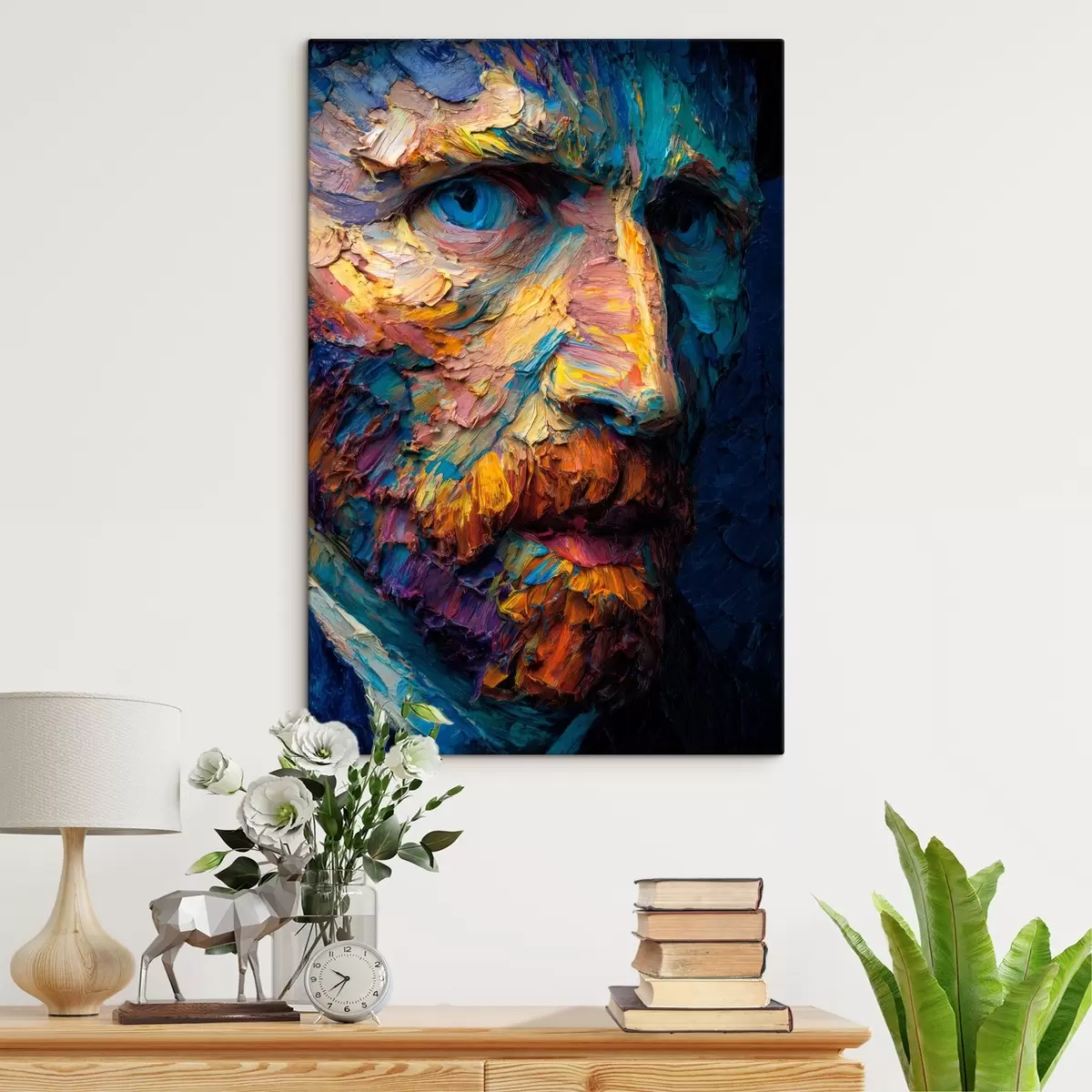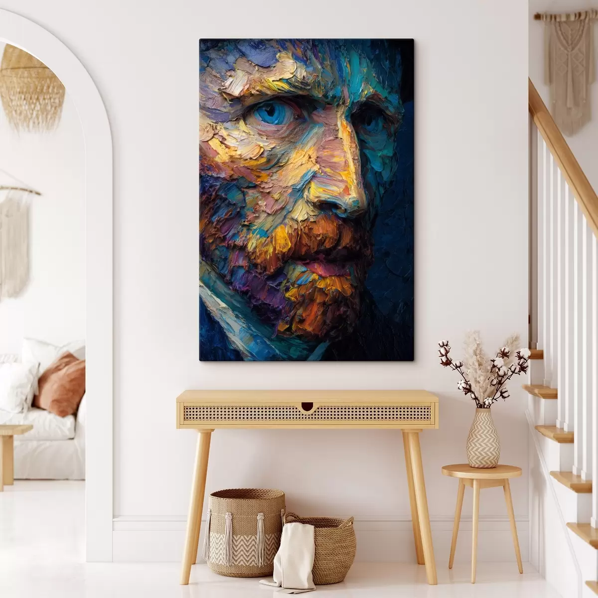Obraz Dekorativní Van Goghův portrét: reliéfní malba v modrých a oranžových tónech Č. s45546